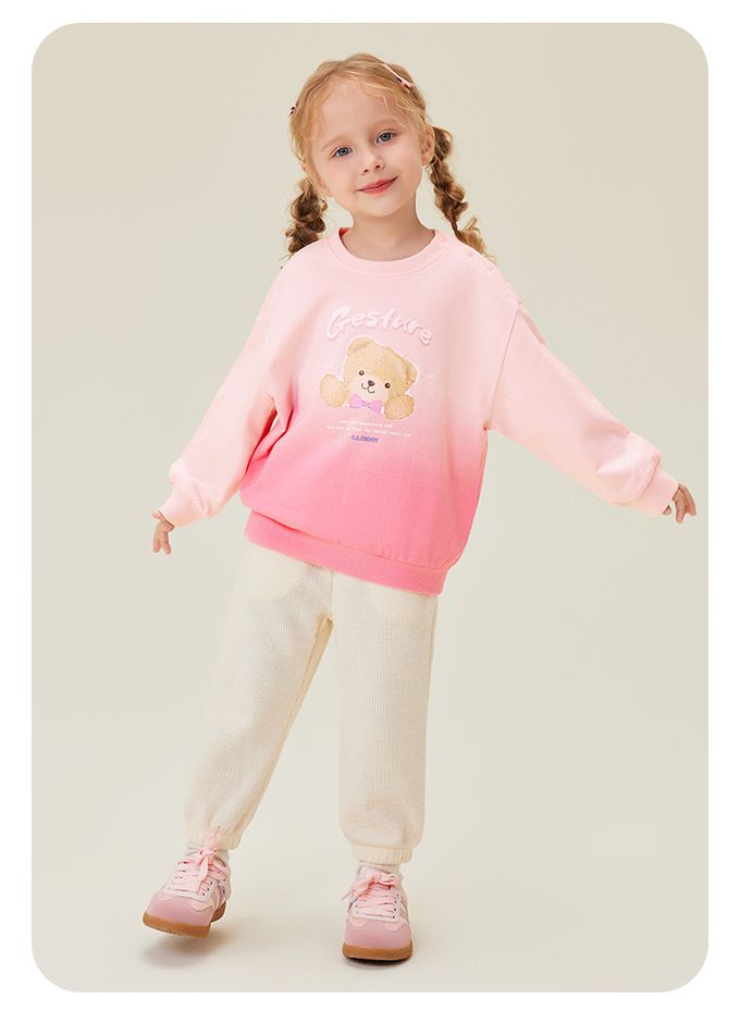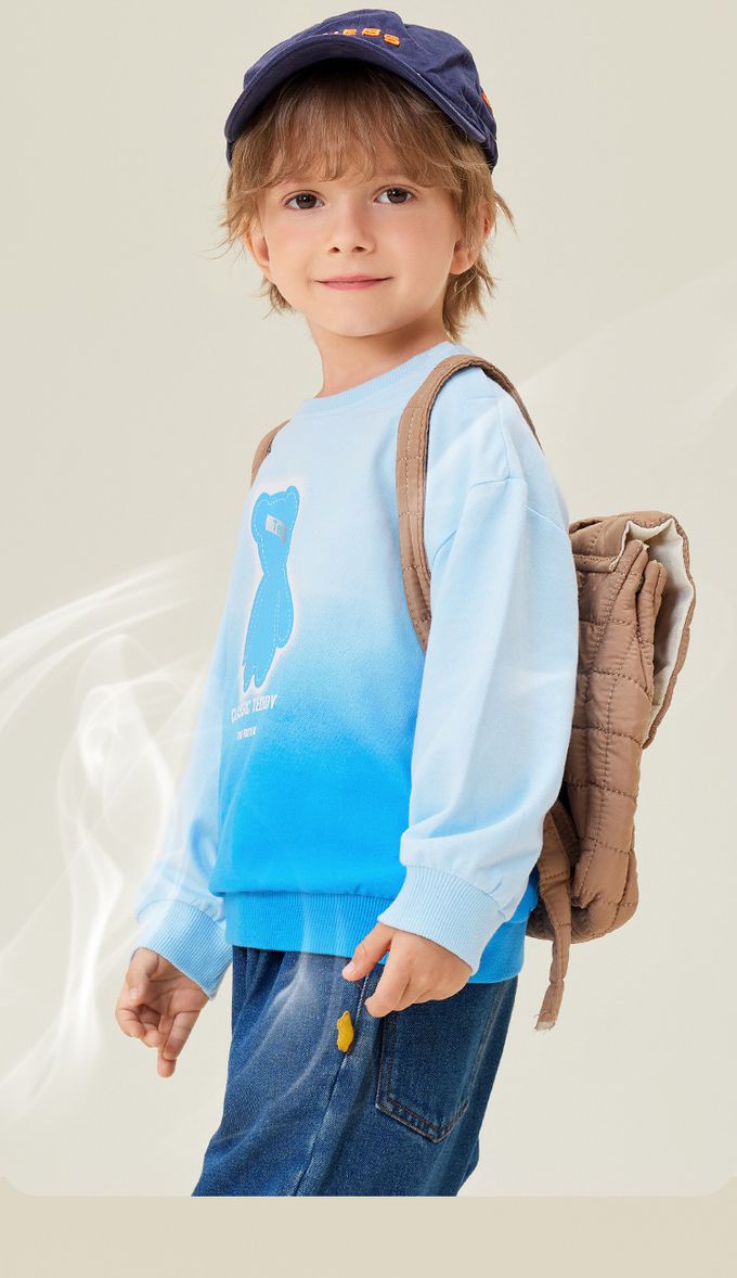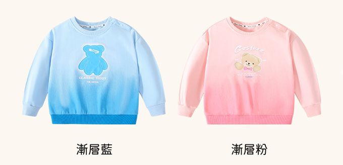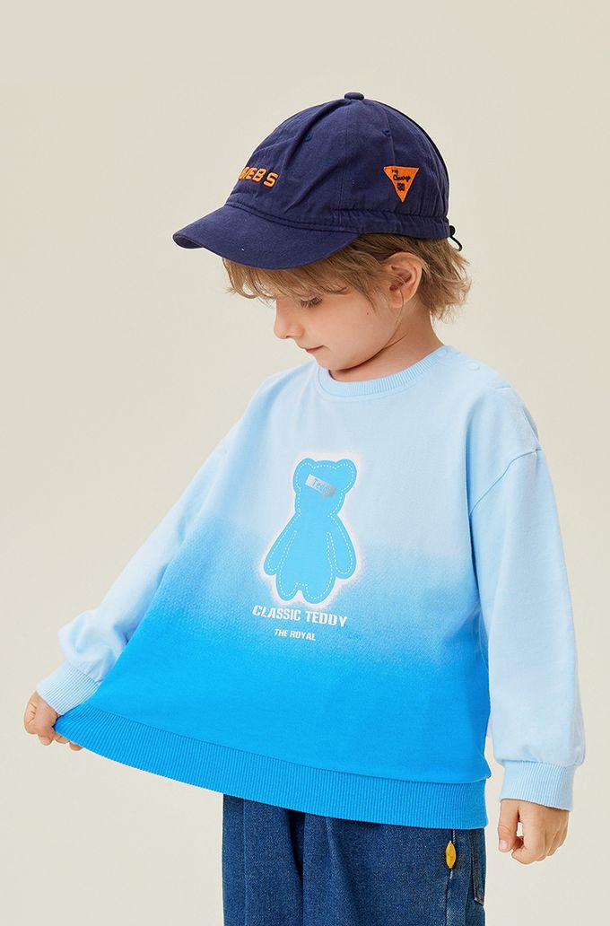 純棉圓領長袖上衣/大學T-泰迪熊-漸層藍