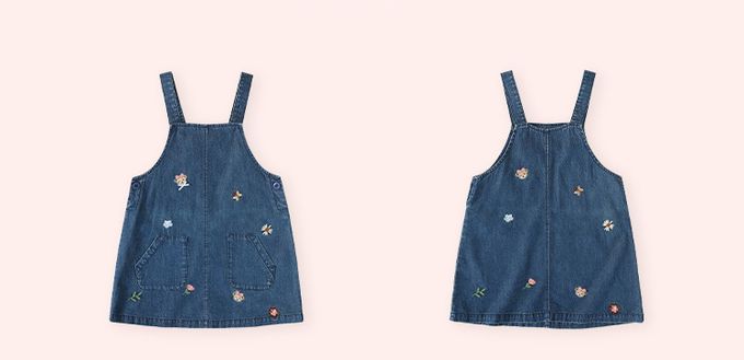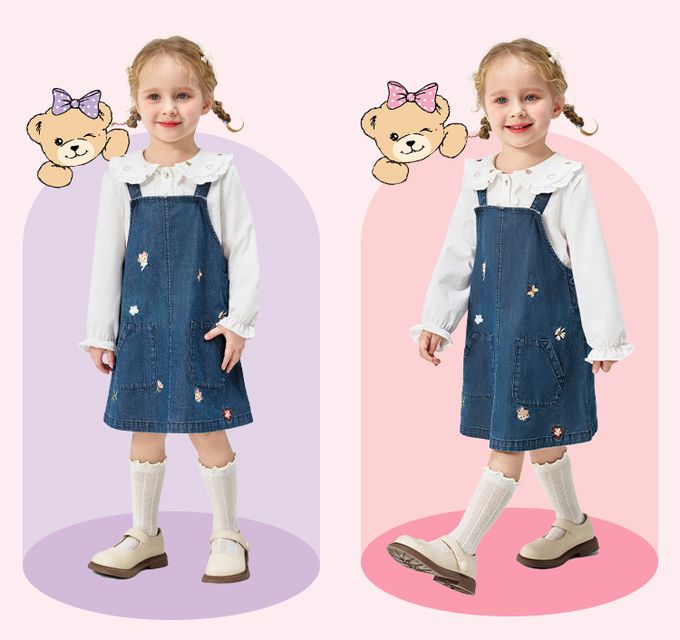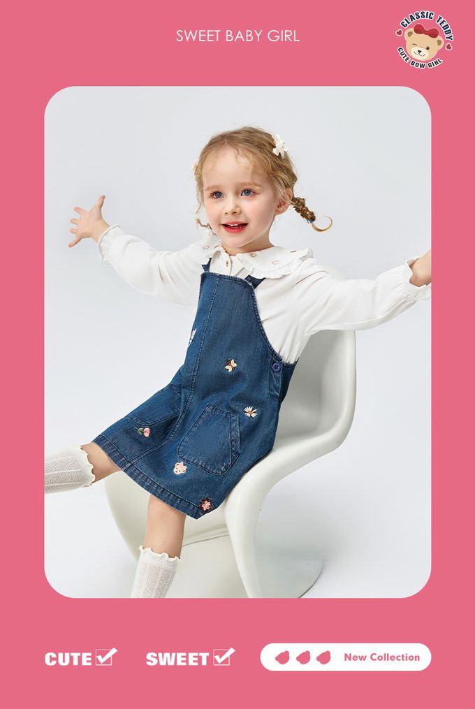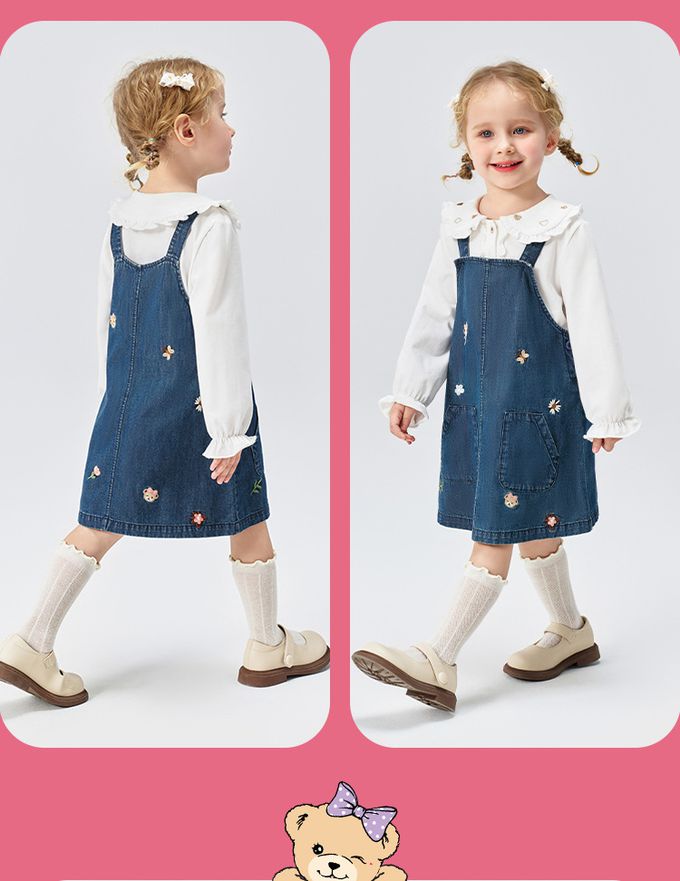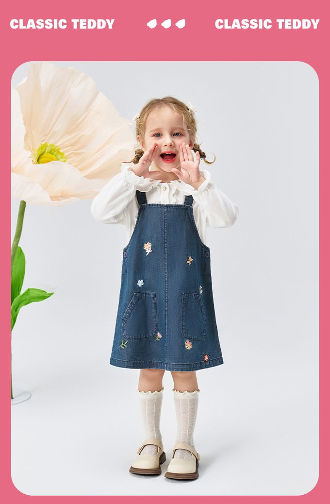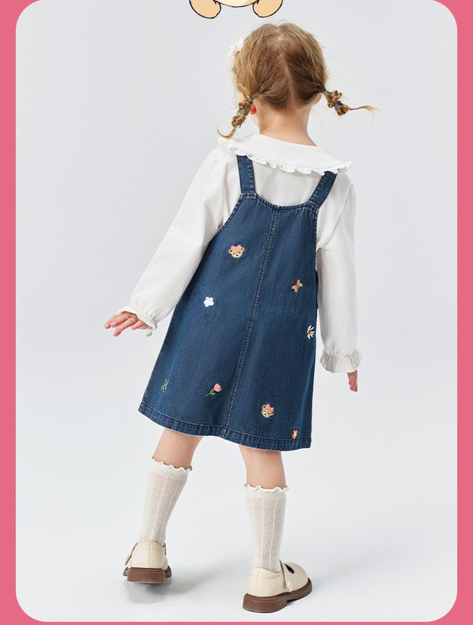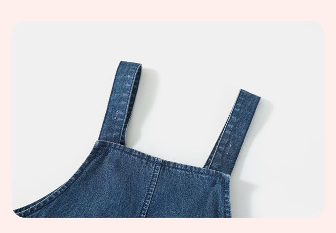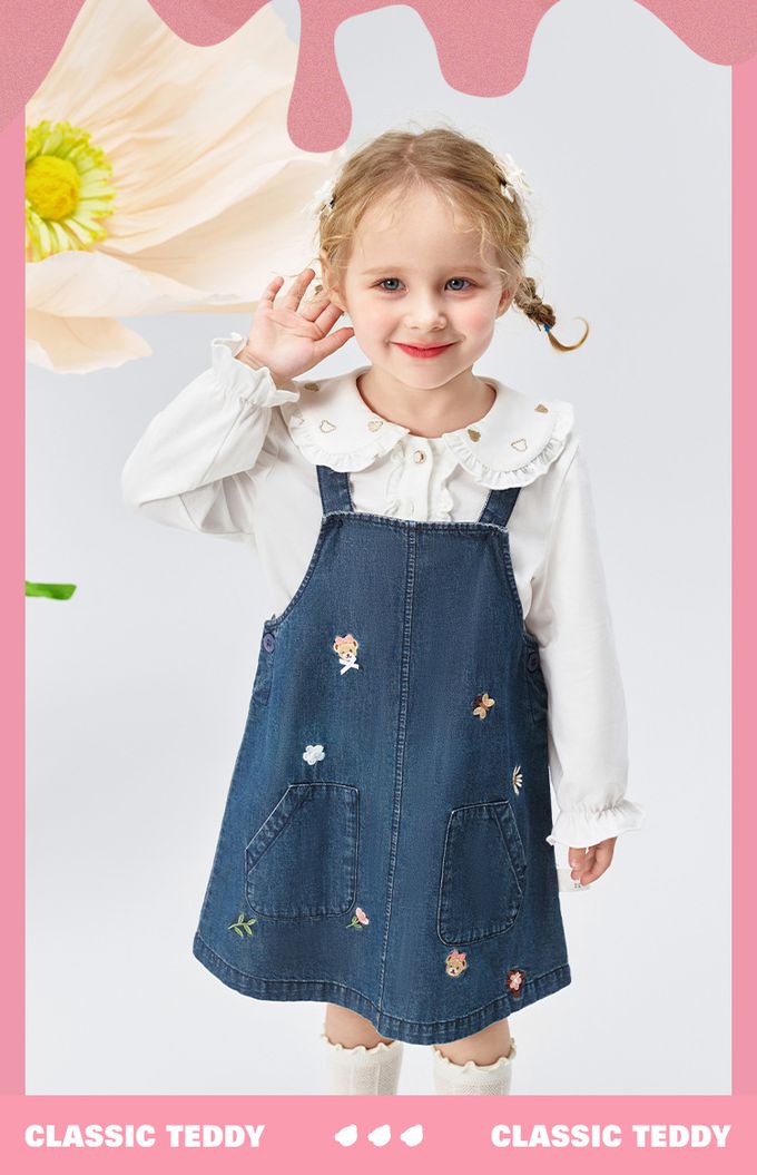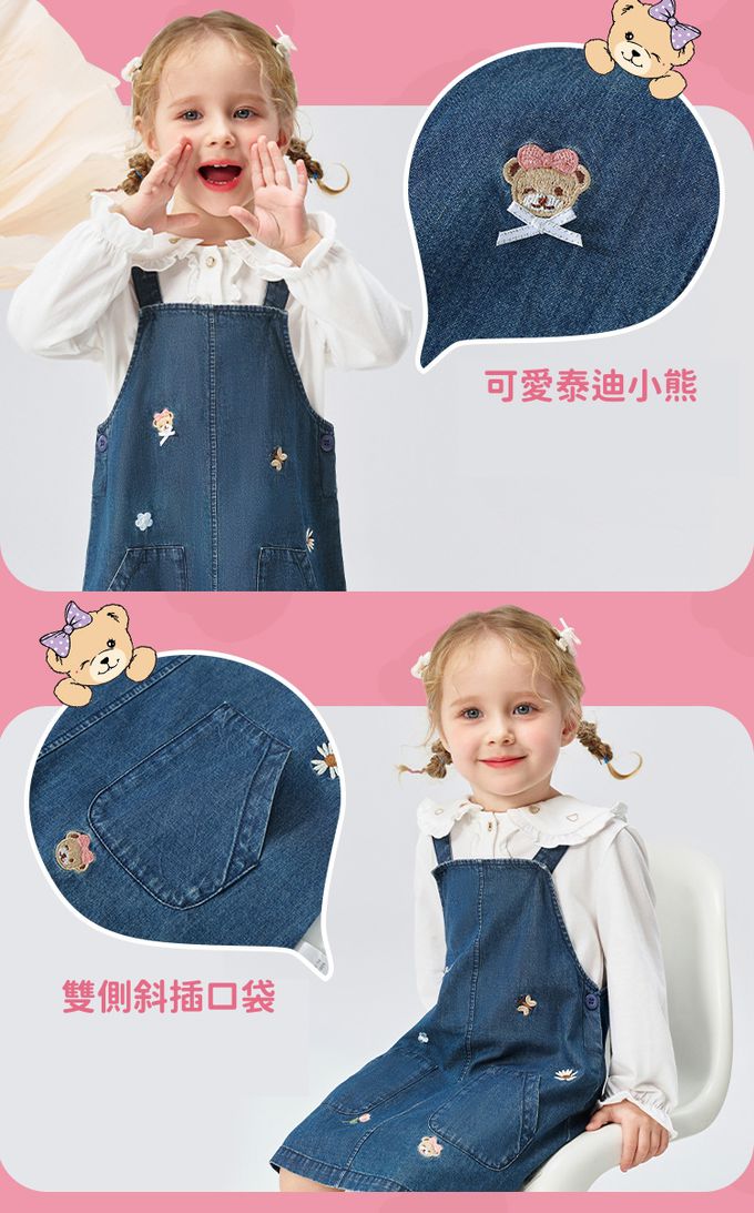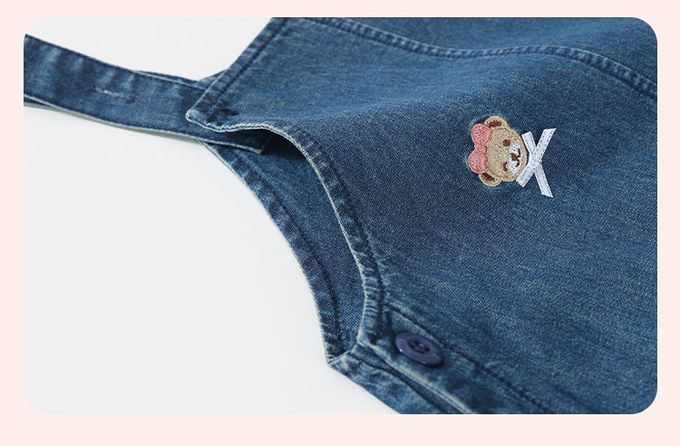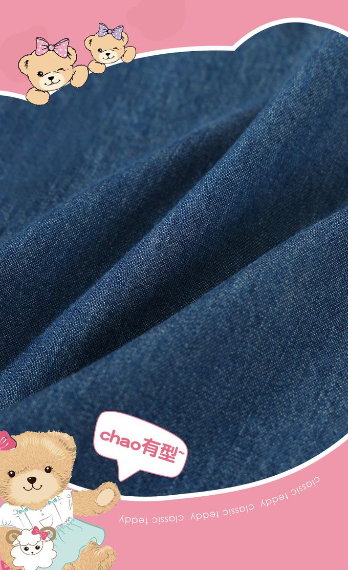 休閒牛仔吊帶洋裝/背心裙-泰迪熊-藍色