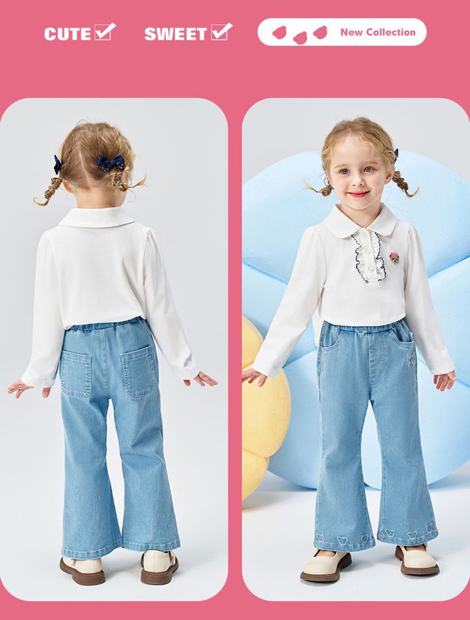 喇叭褲腳搭配小熊刺繡,造型感十足