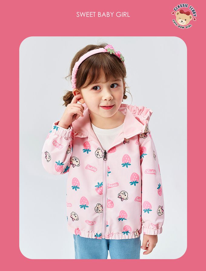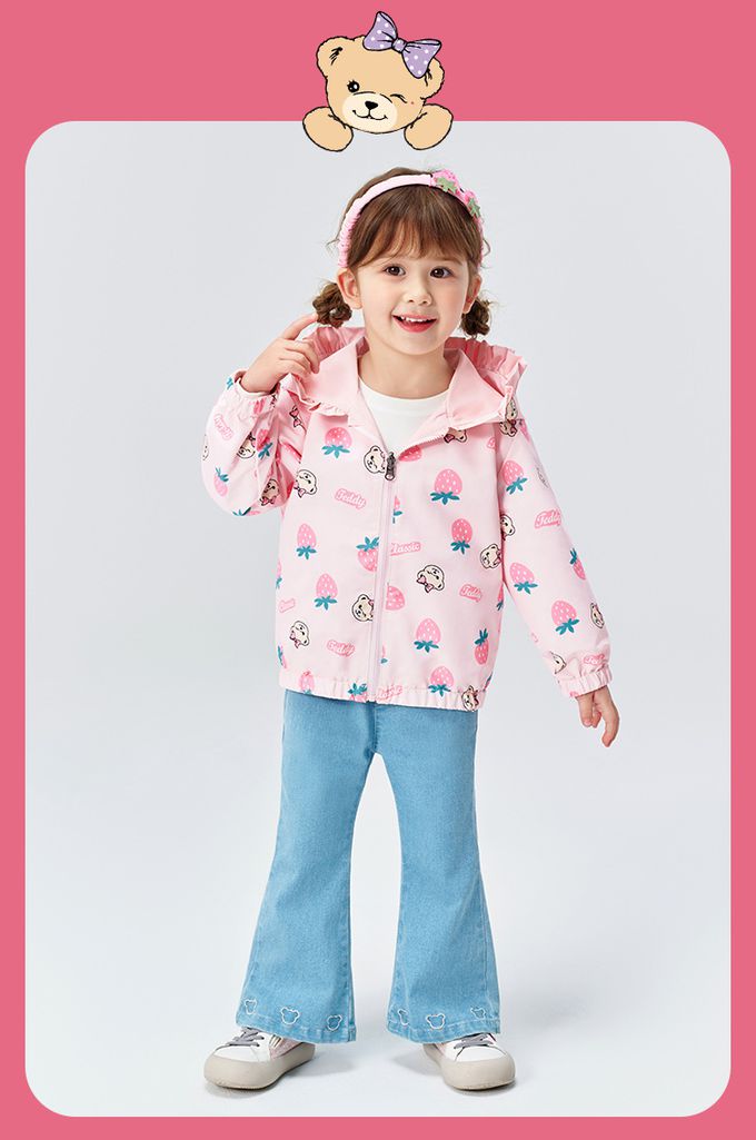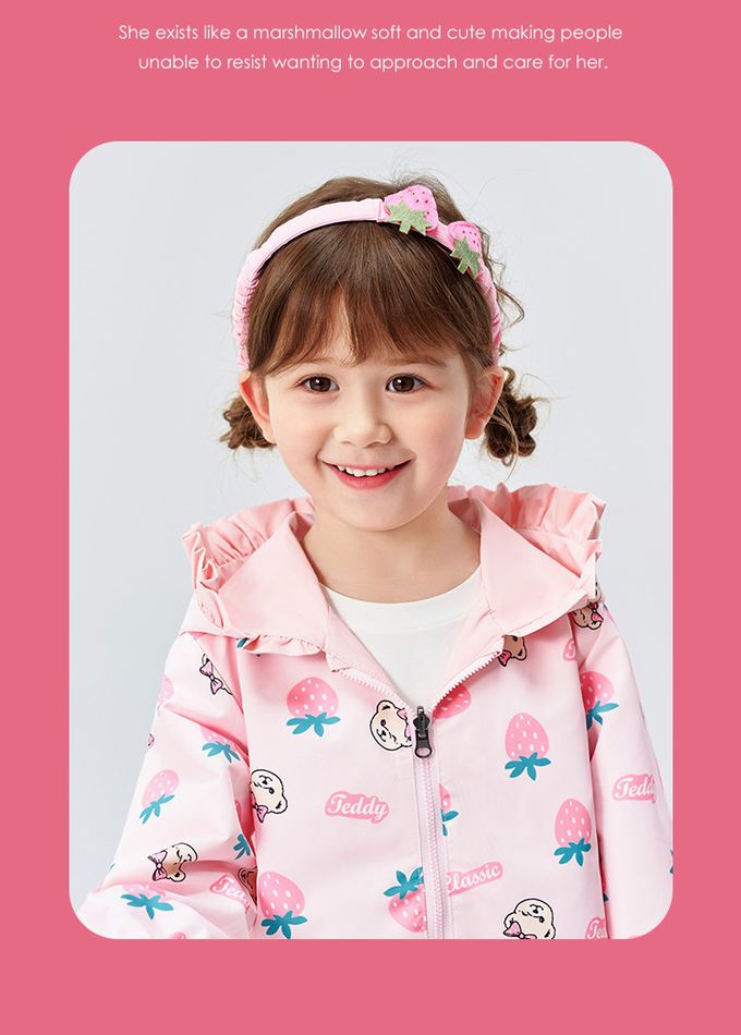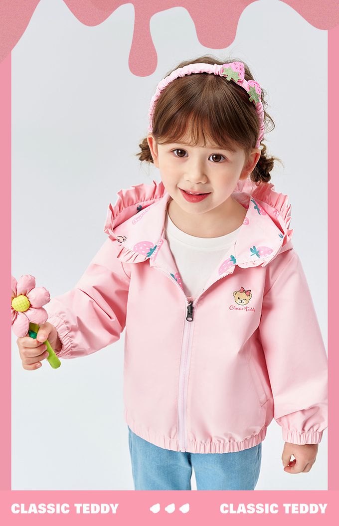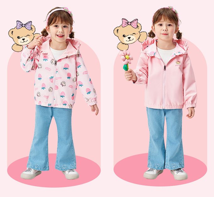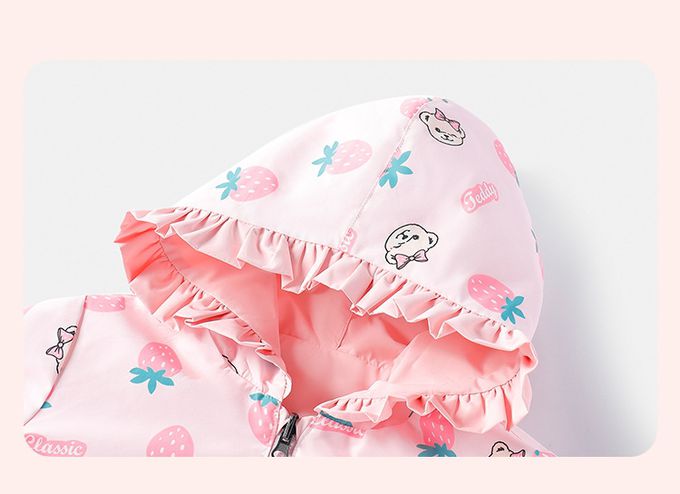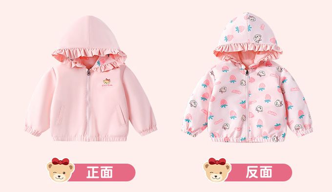 雙面穿!花邊領連帽外套-泰迪熊-粉色