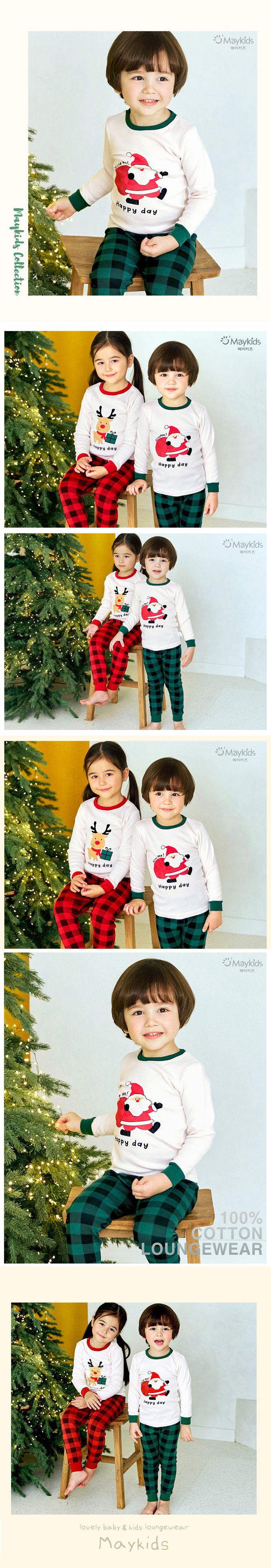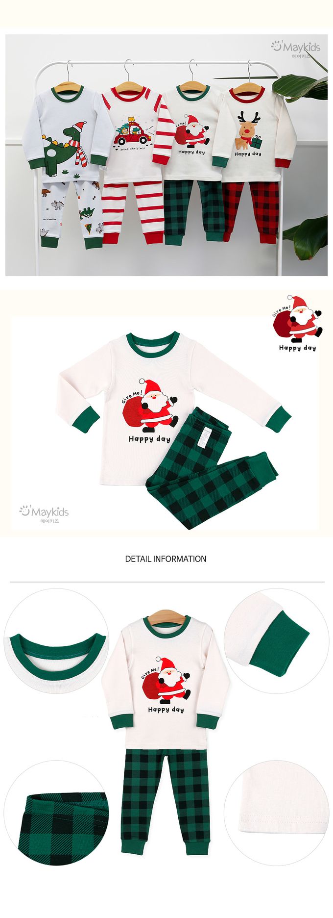 韓國 Maykids - 無螢光20支棉長袖家居服-聖誕老公公-米X綠