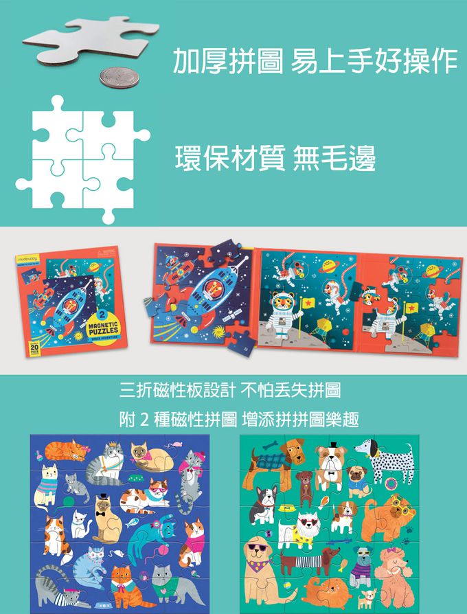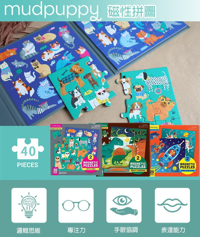 美國 mudpuppy - 磁性拼圖-貓狗大集合-40片