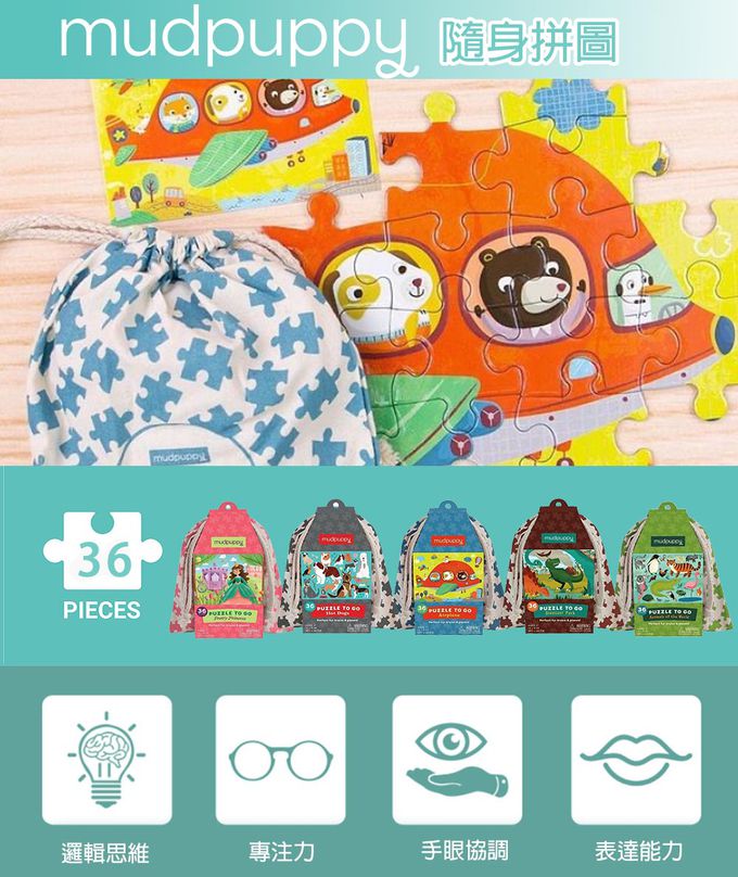 孩子最近愛上拼圖,這次購買的 mudpuppy 非常滿意,他很愛拼~ 隨身款方便攜帶、拼圖和收納袋質感都很好,材質光滑不刮手,圖案也可愛。夜光款很漂亮,小孩會主動要求說要關燈看發光的完成品~