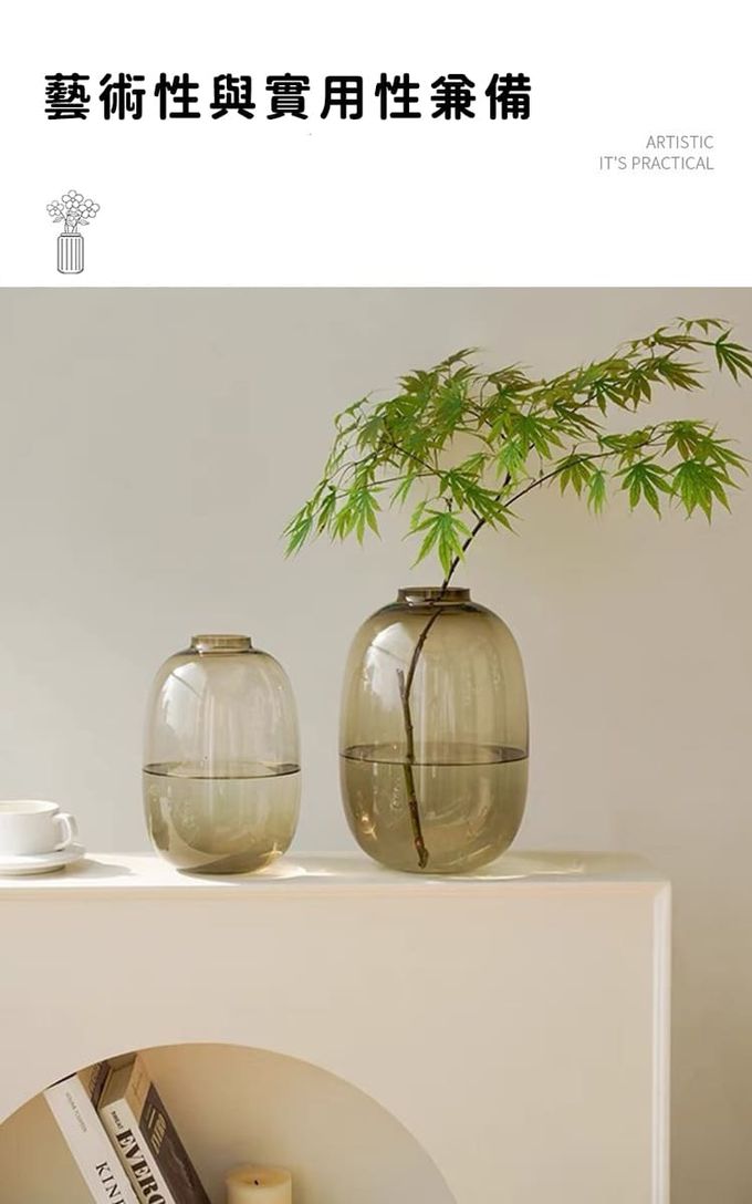 輕奢簡約大肚玻璃花瓶-透明 大+小 兩件組