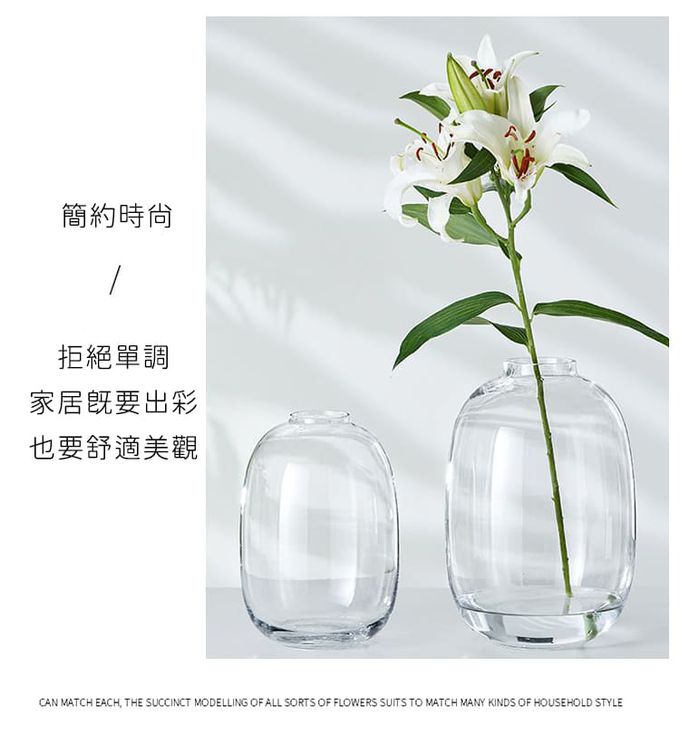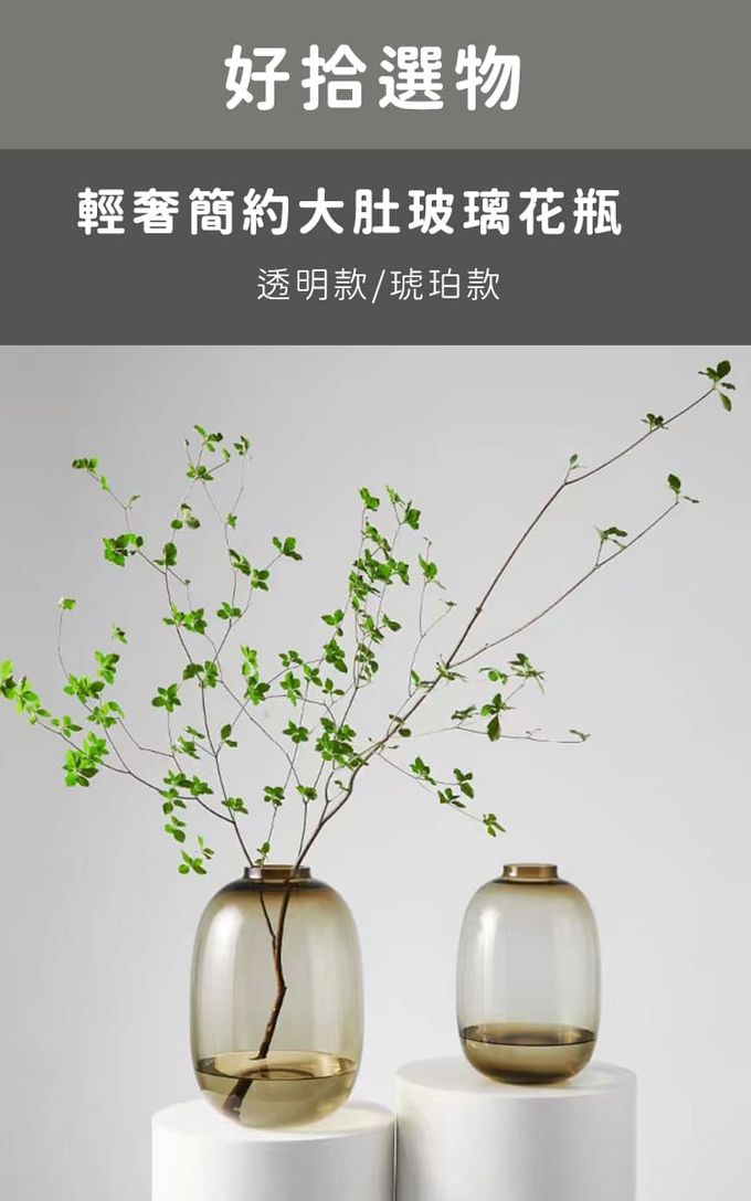 品名:輕奢簡約大肚玻璃花瓶-透明 大+小 兩件組