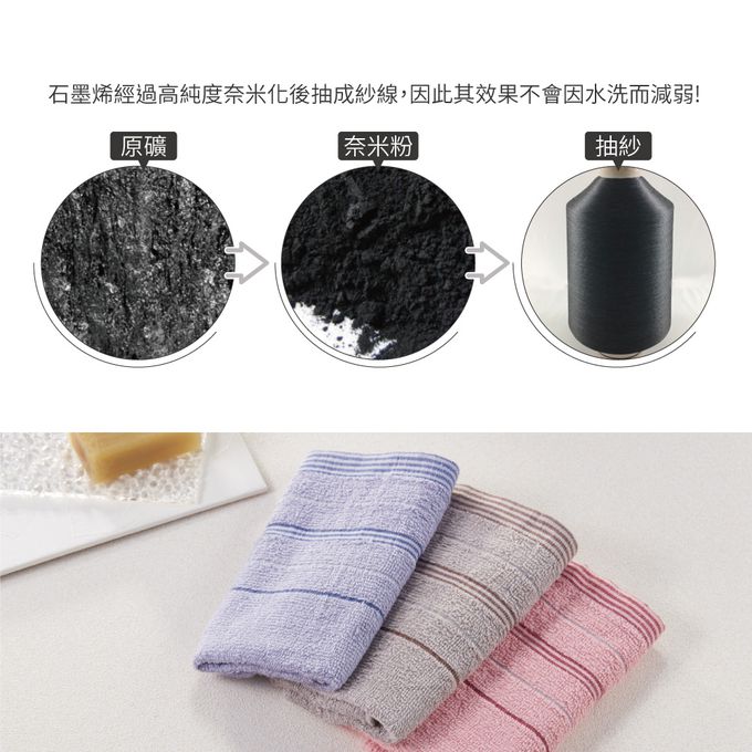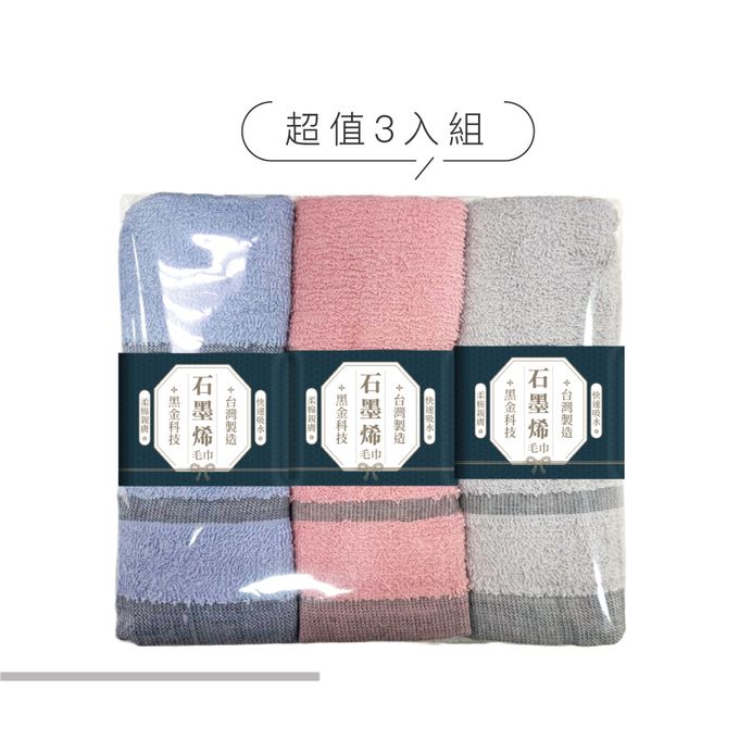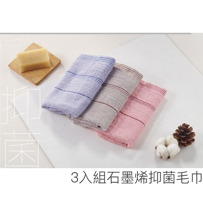 石墨烯健康抑菌毛巾3入組-隨機色 (70x32cm)