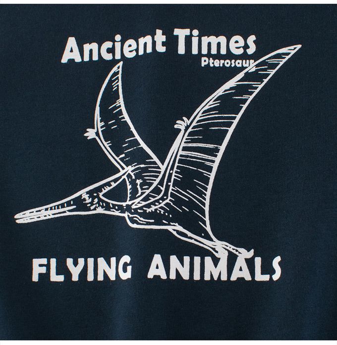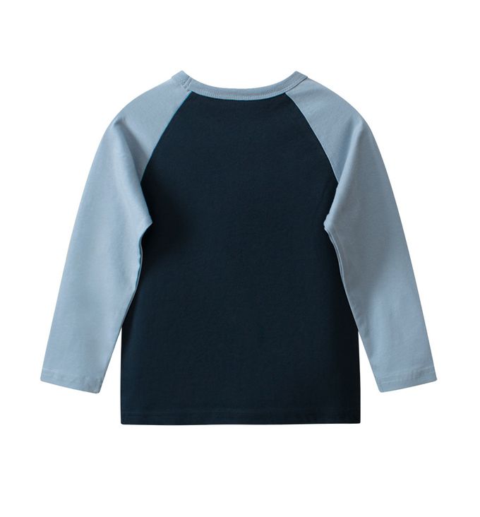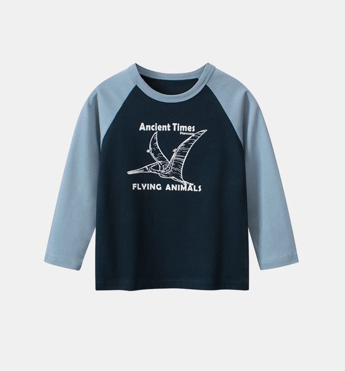 純棉長袖上衣-飛翔恐龍-拼色藍