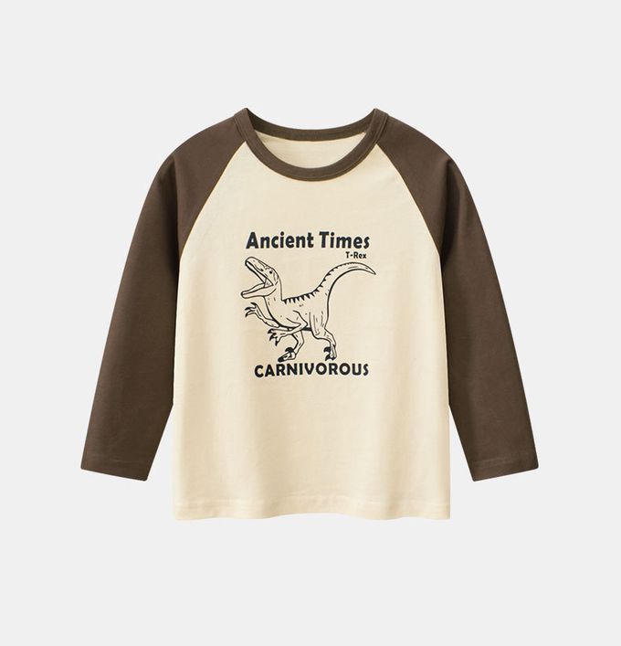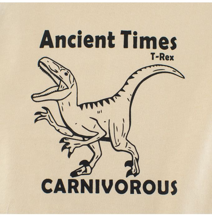 純棉長袖上衣-肉食性恐龍-米杏/咖