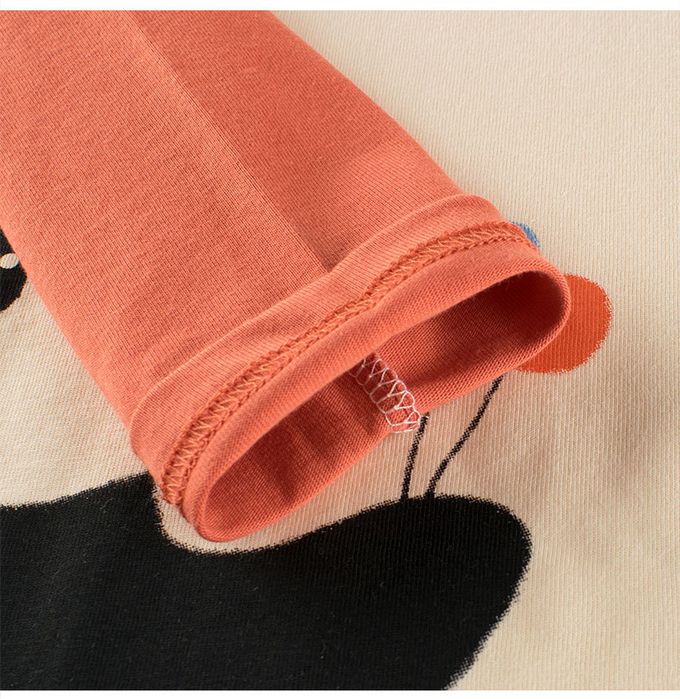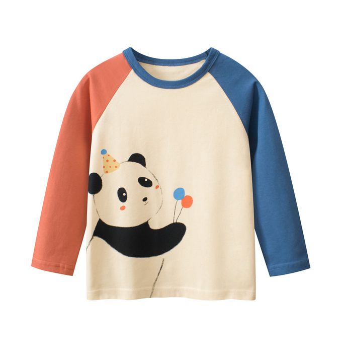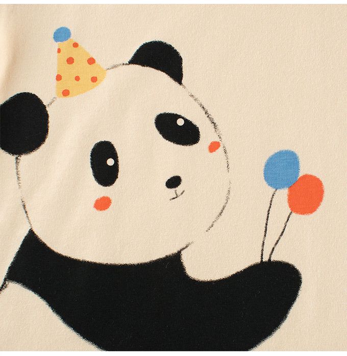 27KIDS - 純棉長袖上衣-拼袖熊貓-米杏