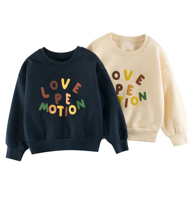 加絨棉混紡長袖大學T-LOVE PE MOTION-米杏