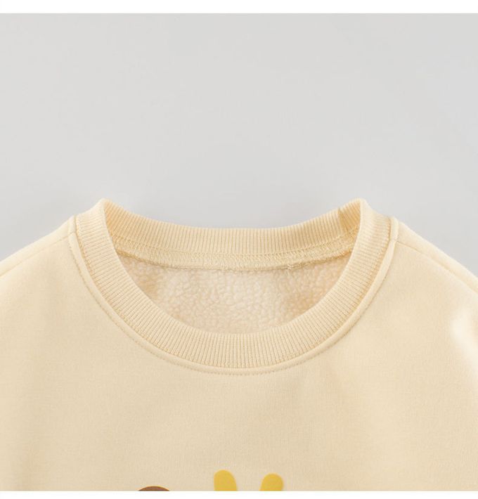 27KIDS - 加絨棉混紡長袖大學T-STARS-黃色