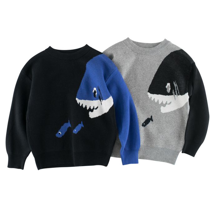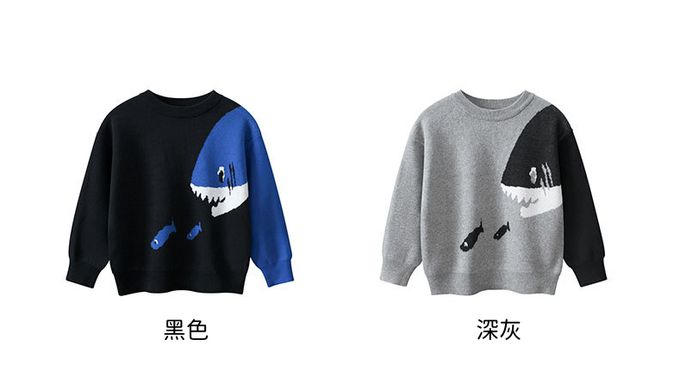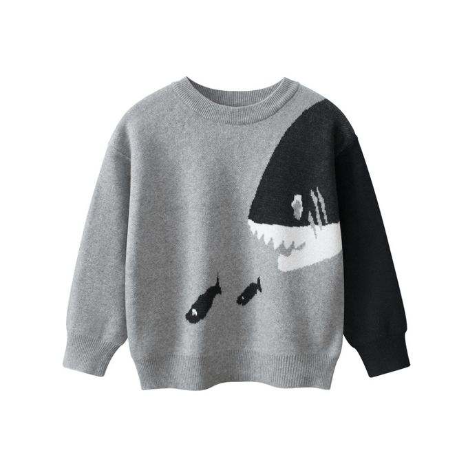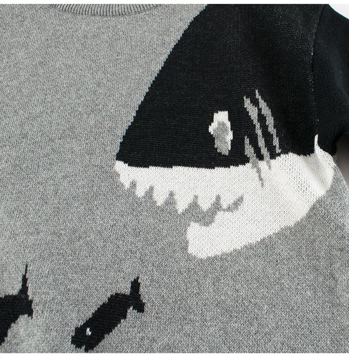 純棉針織長袖毛衣-鯊魚咬咬-深灰