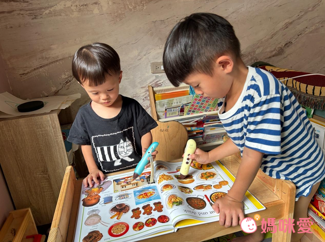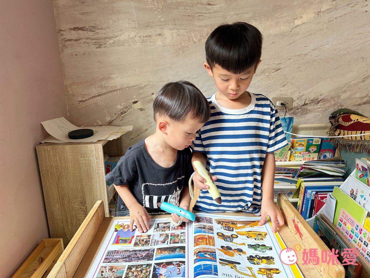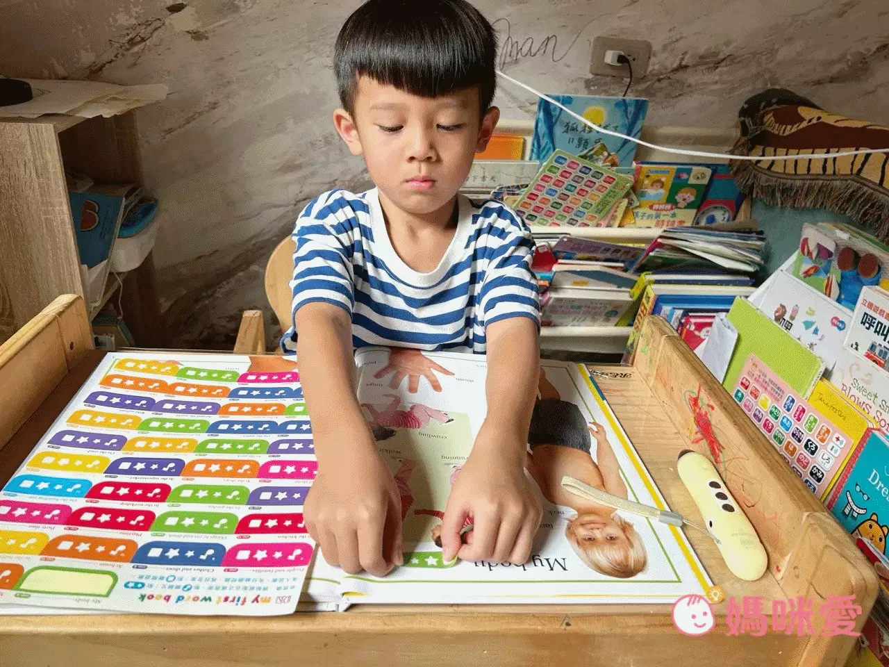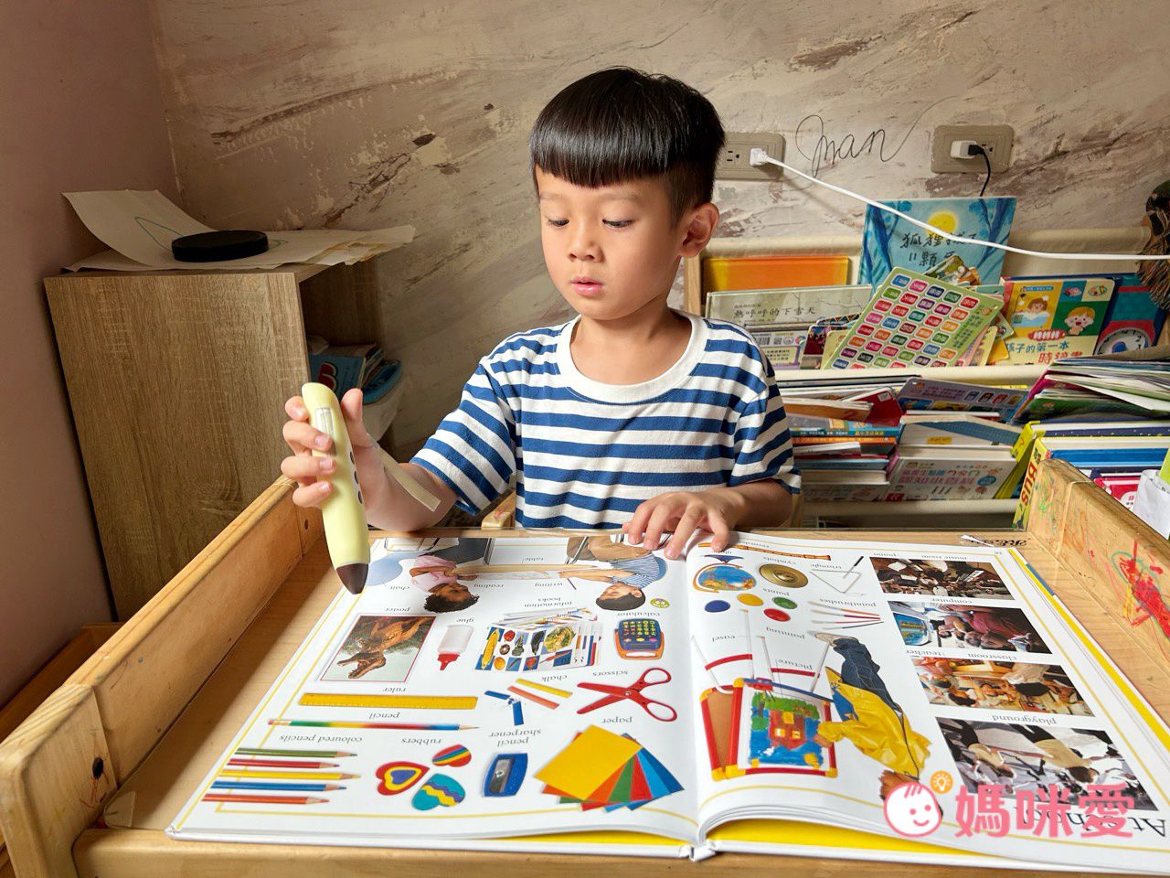 在旁陪讀之餘,叮囑孩子要跟著唸跟著書本發音、記憶單字,語言最需要的就是開口說,相信這樣下去可以進步不少!