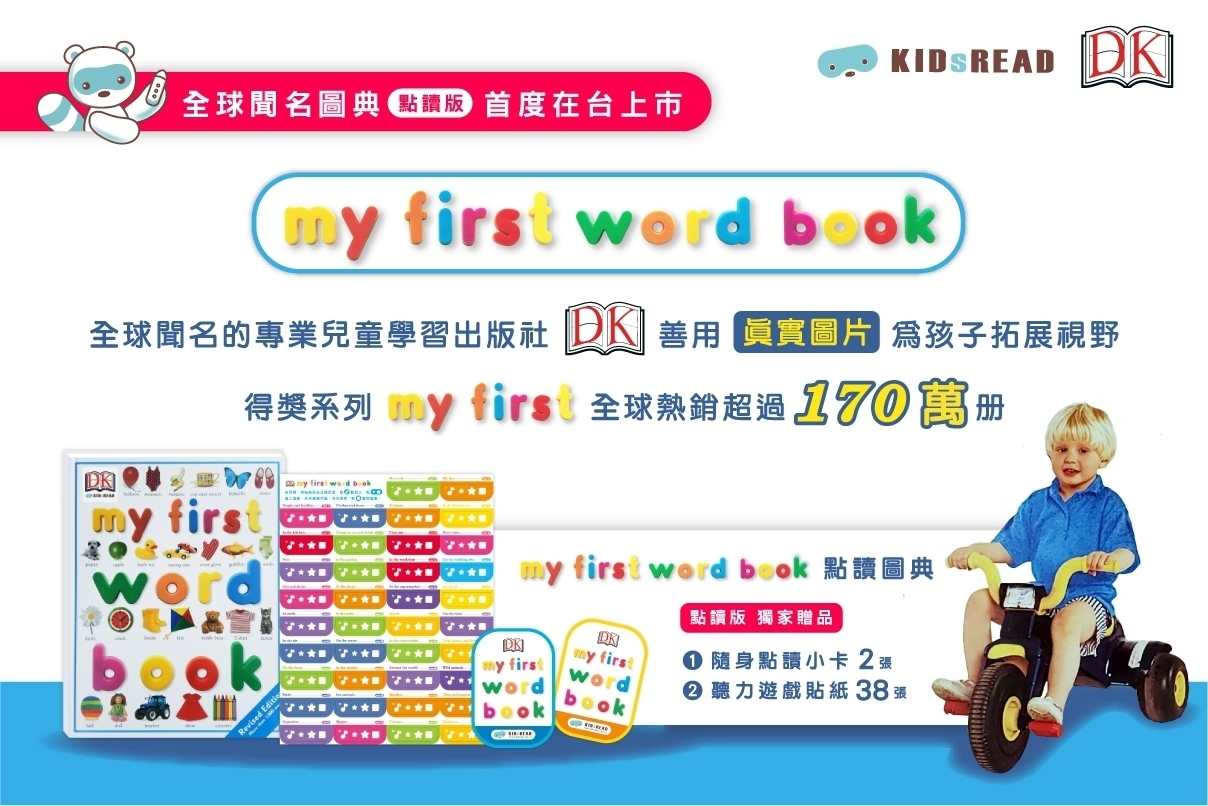 獲得許多家長與老師們高度肯定的My First Word Book真實圖片字典,帶領小讀者探索生活周遭的各類英文字詞,且對於周遭事物的認知有更直覺、更精準的連結。
