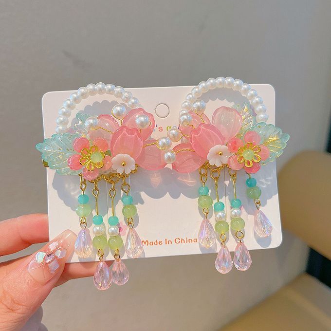 • 品名:仙氣珍珠花籃造型吊墜髮飾對夾
