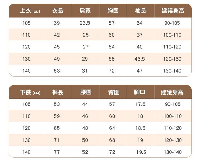 105cm、110cm、120cm、130cm、140cm
