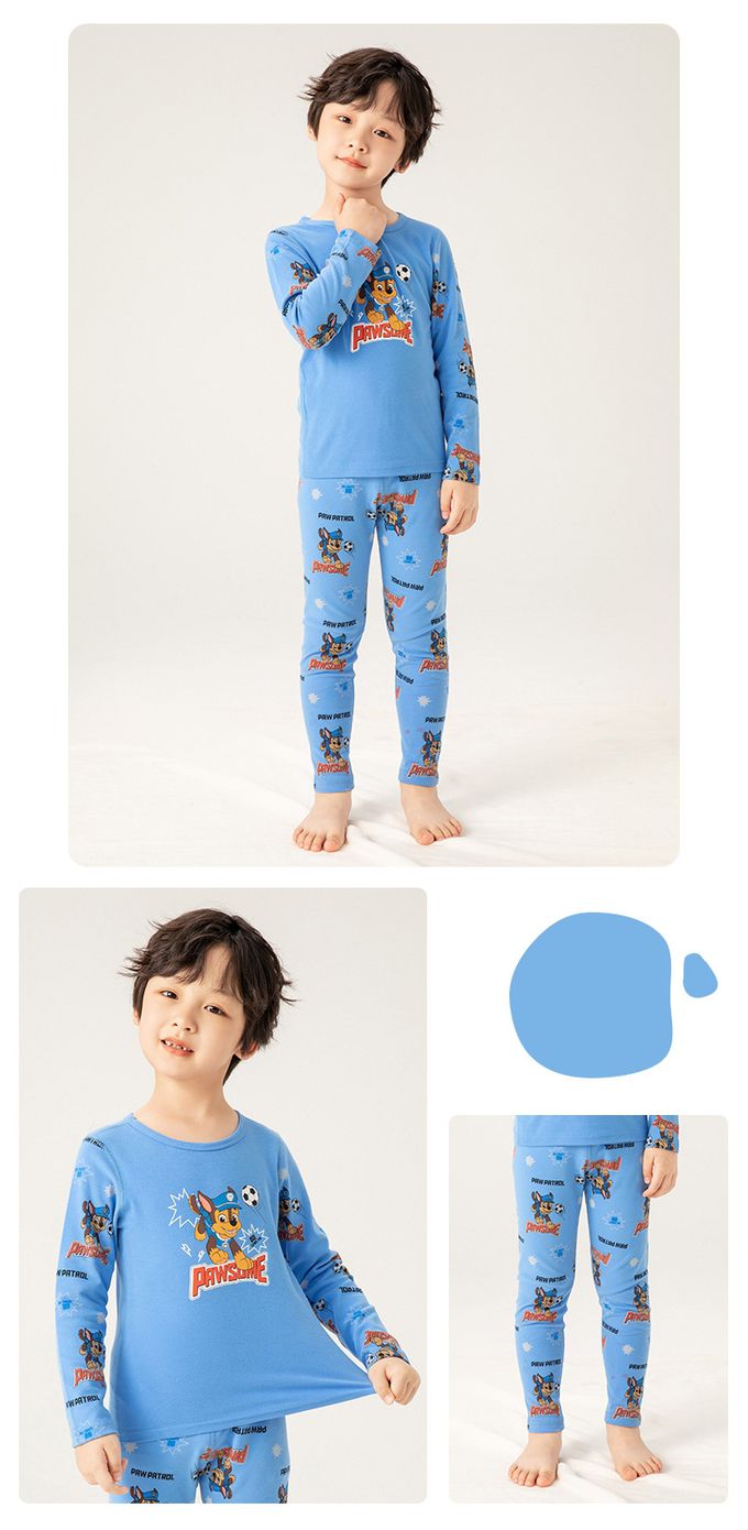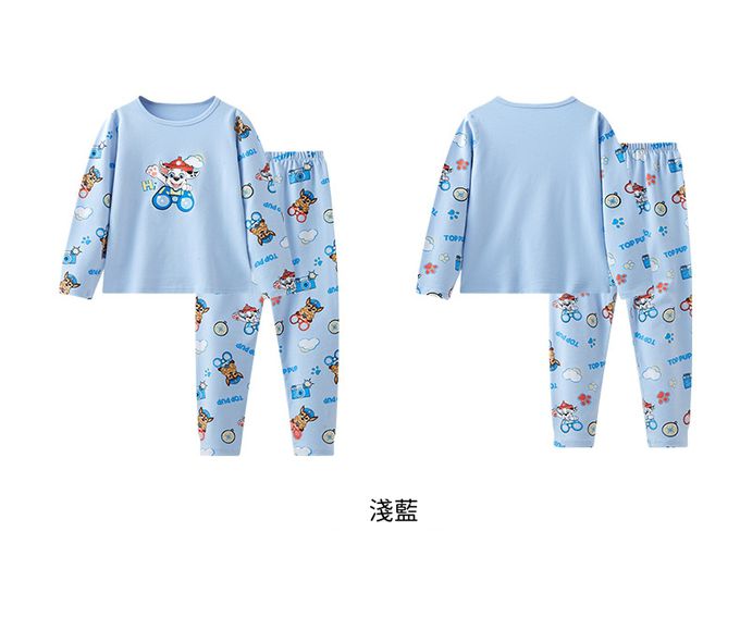 卡通汪汪隊純棉長袖家居服套裝-卡通人物毛毛-淺藍