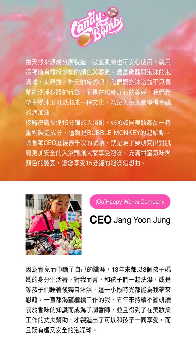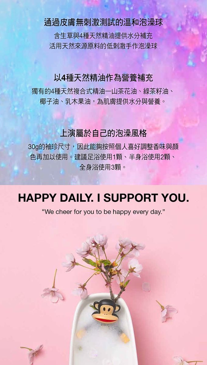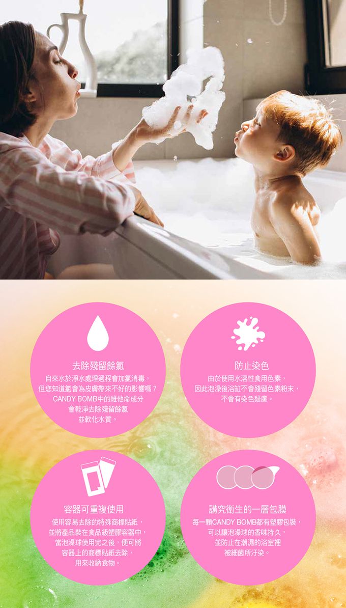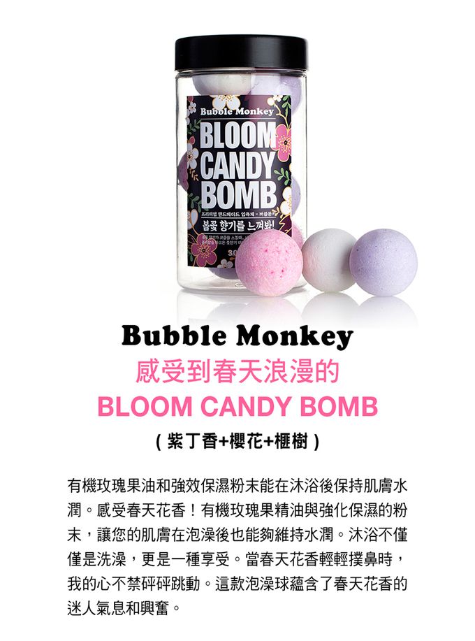 ★ 泡沫浴泡澡球-感受到春天浪漫的BLOOM_CANDY_BOMB★ 全家人都適用,一起度過幸福的悠閒時光!🫧🫧★ 有機玫瑰果油和強效保濕粉末能在沐浴後保持肌膚水潤。★ 通過皮膚無刺激測試的溫和泡澡球★ 含生草與4種天然精油提供水分補充使用植物性 🍃水溶性來源天然食用色素原料,因此泡澡後浴缸不會殘留色素粉末,不會有染色疑慮。規格:BLOOM 🌿紫丁香+櫻花+榧樹容量:10入-300g (30x10ea) /罐保存方法:置於陰涼乾燥處有效日期及批號:如包裝上所示產地:韓國
