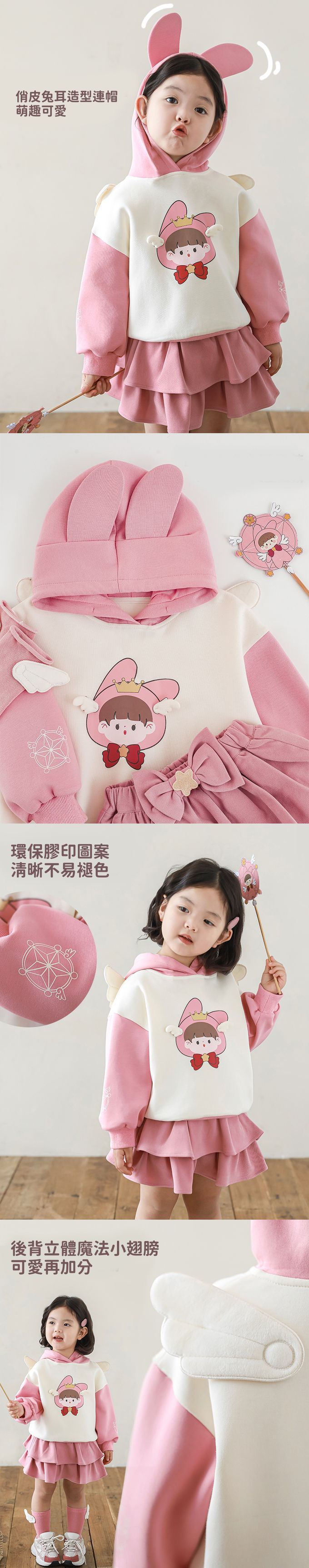 俏皮兔耳朵連帽上衣-立體魔法翅膀-粉色