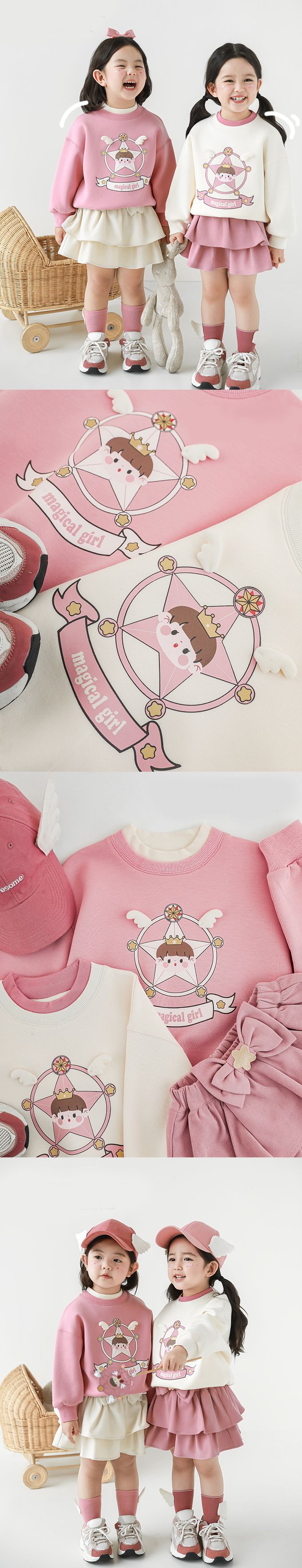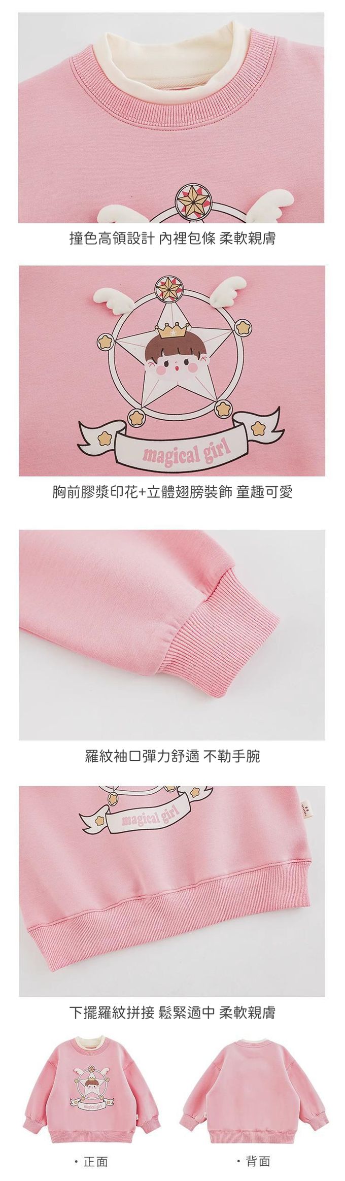 撞色圓領長袖上衣/大學T-魔法女孩-粉色