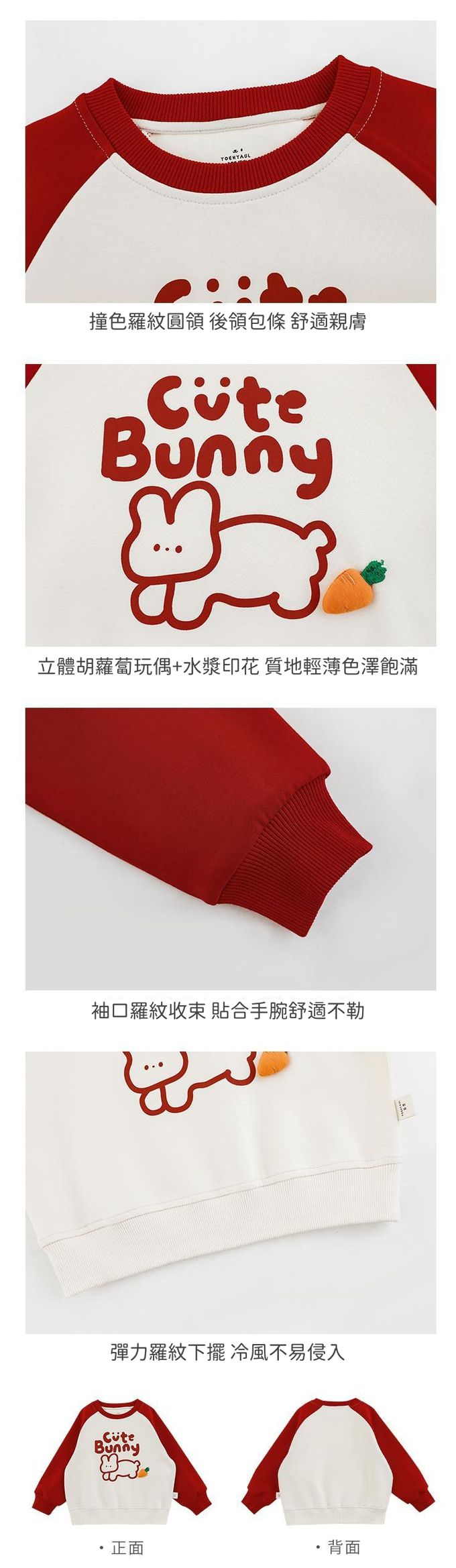 撞色拼袖長袖上衣/大學T-兔子拔到立體紅蘿蔔-米色