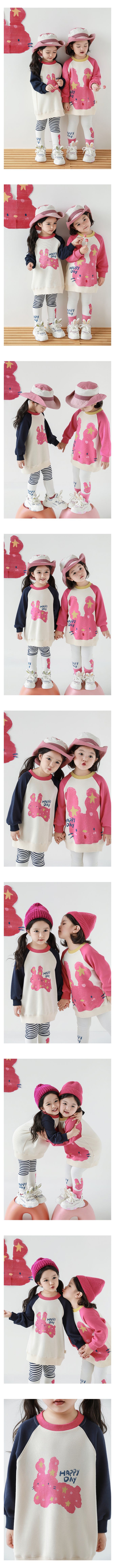 TONGMO - 中長款圓領撞色長袖上衣-雲朵兔兔-藍色