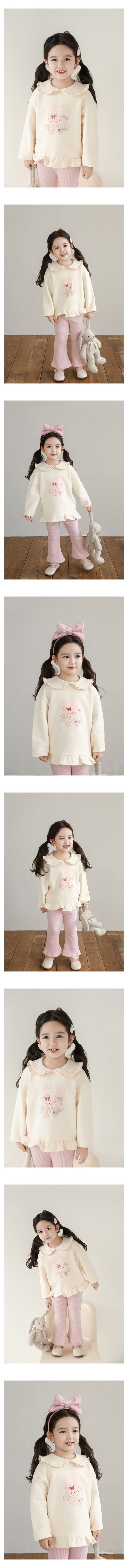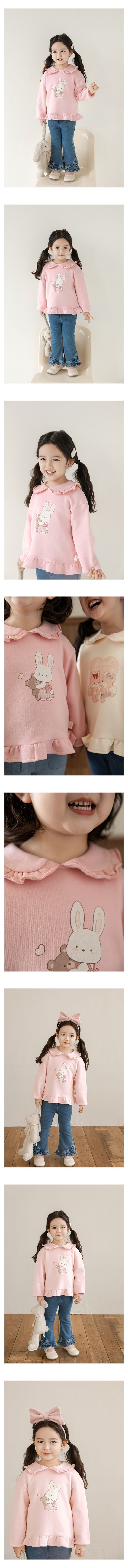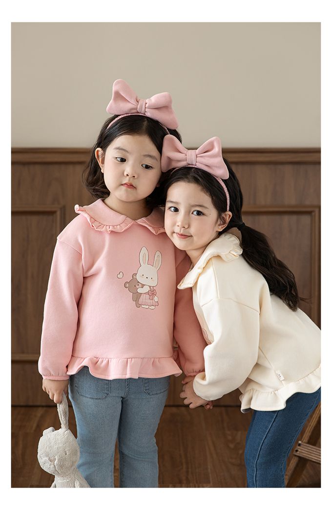 純棉木耳花邊娃娃翻領長袖上衣-兔子抱抱-粉色