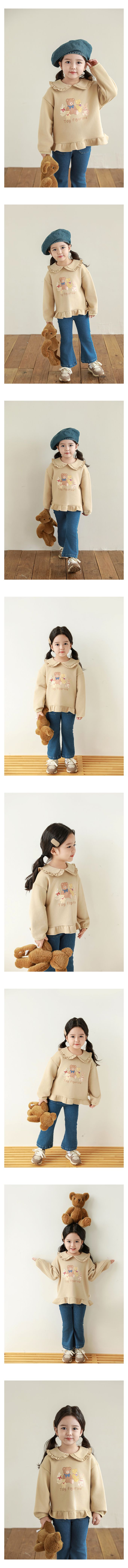 TONGMO - 純棉木耳花邊娃娃翻領長袖上衣-萌萌動物-米色