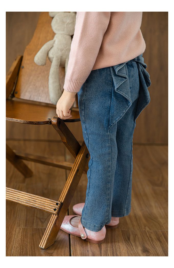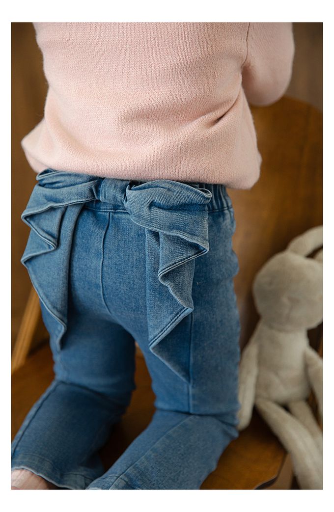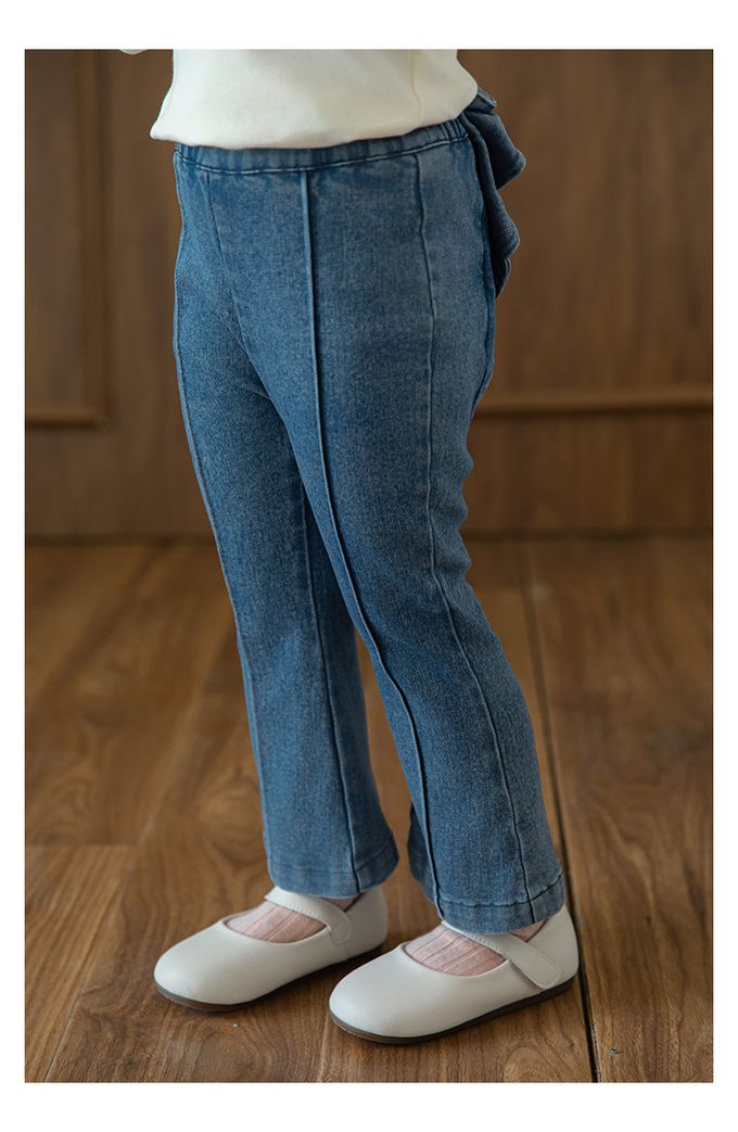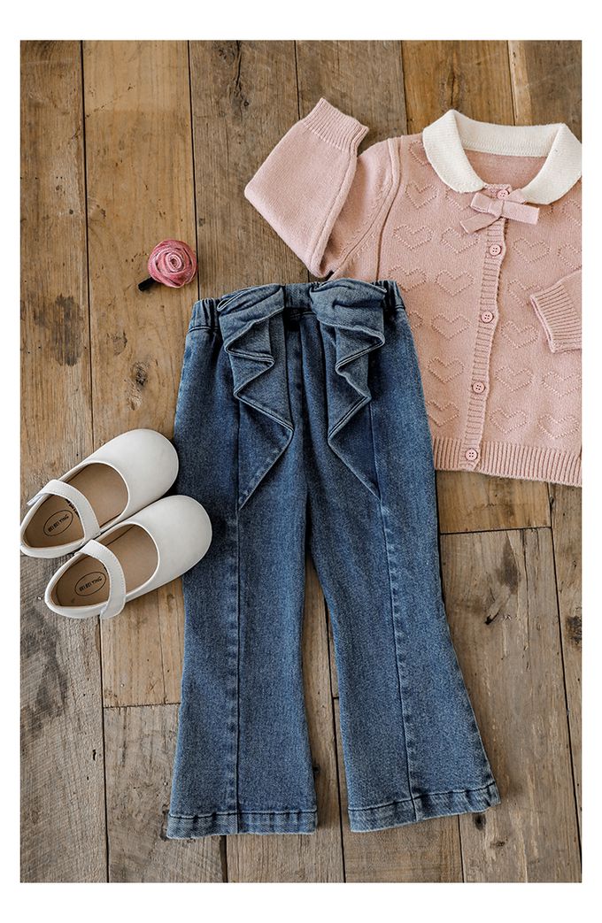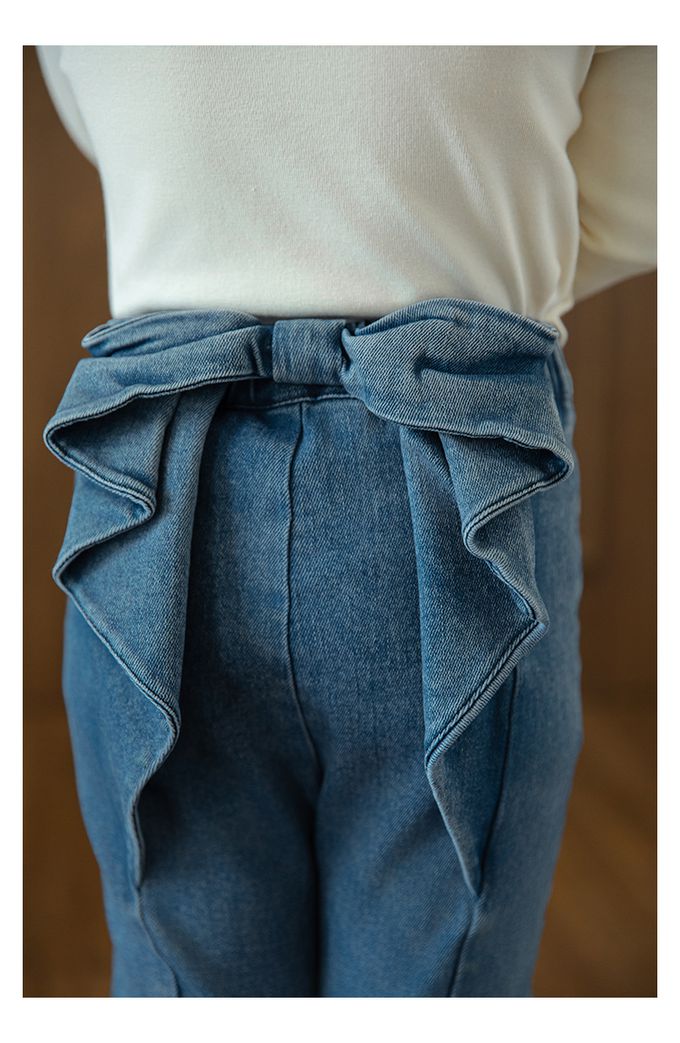 腰鬆緊微彈小喇叭長褲-立體蝴蝶結-藍色