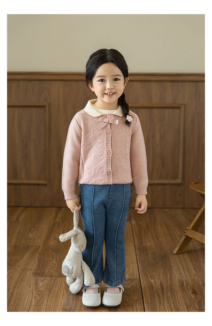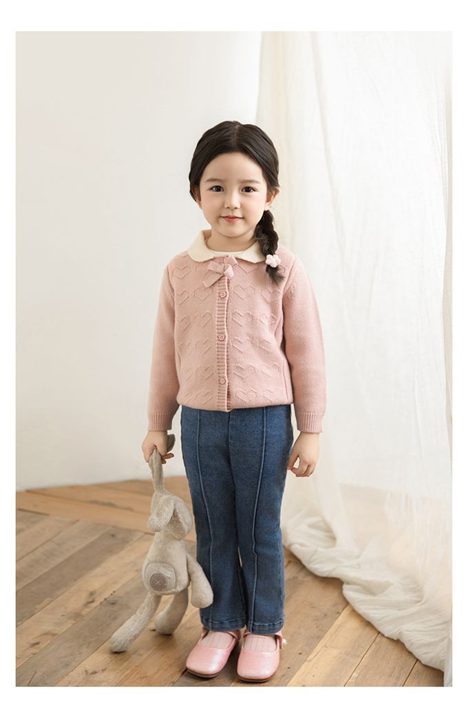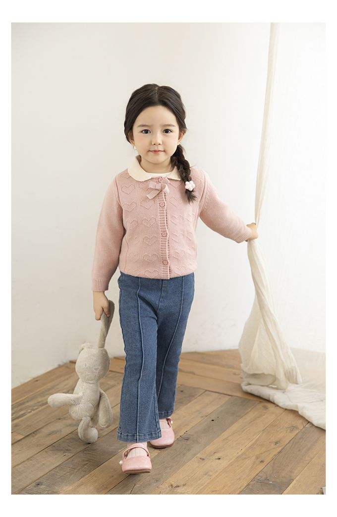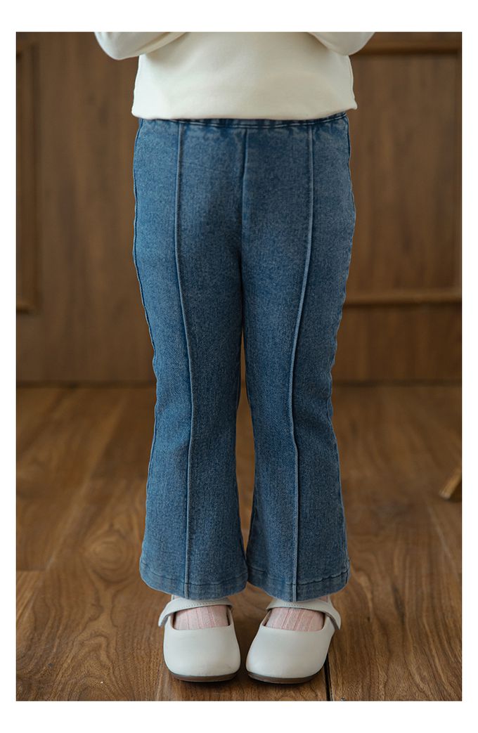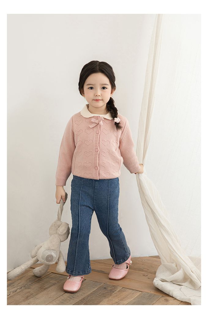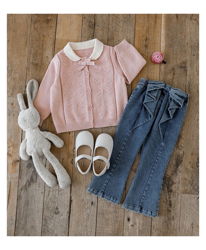 腰鬆緊微彈小喇叭長褲-立體蝴蝶結-藍色