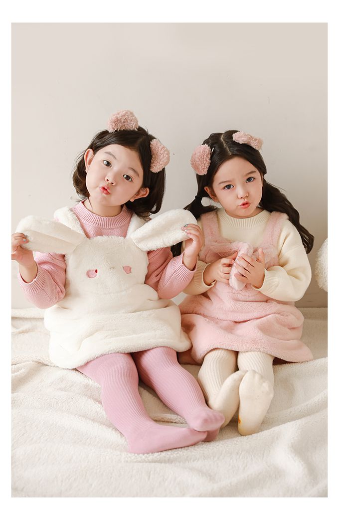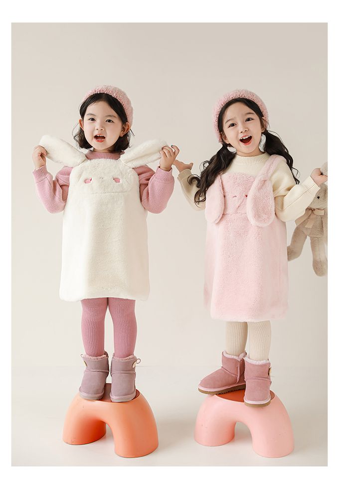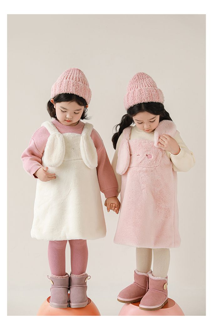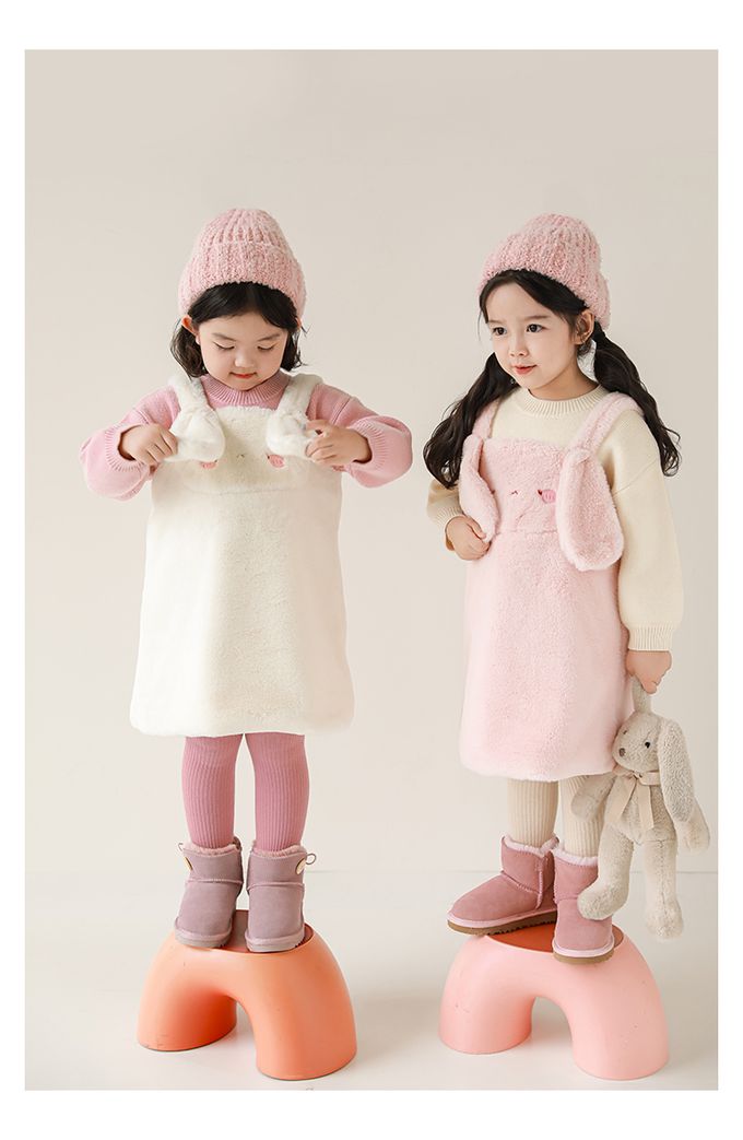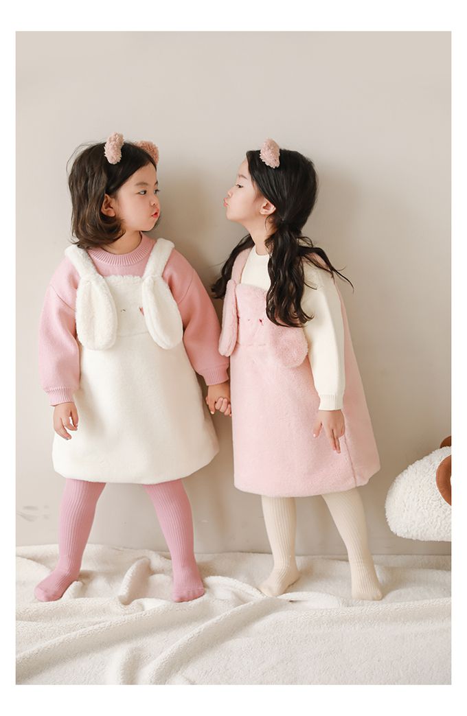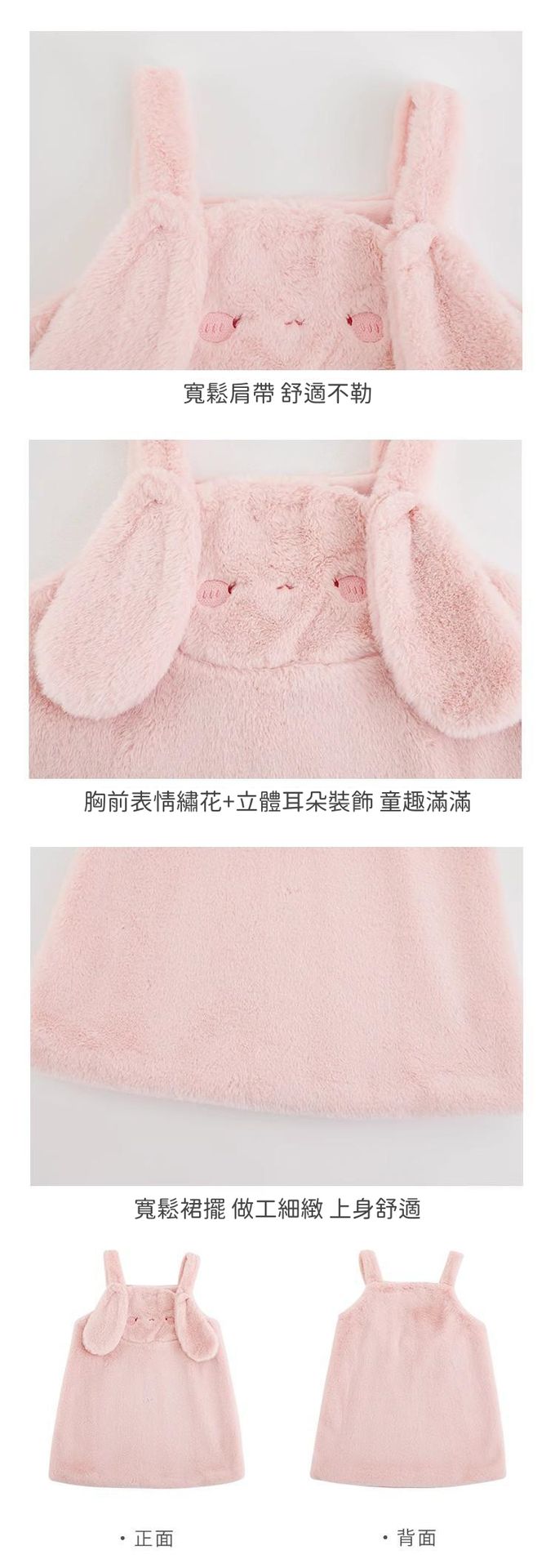 仿兔絨加厚保暖吊帶裙/洋裝(不含內搭上衣)-立體萌兔-白色