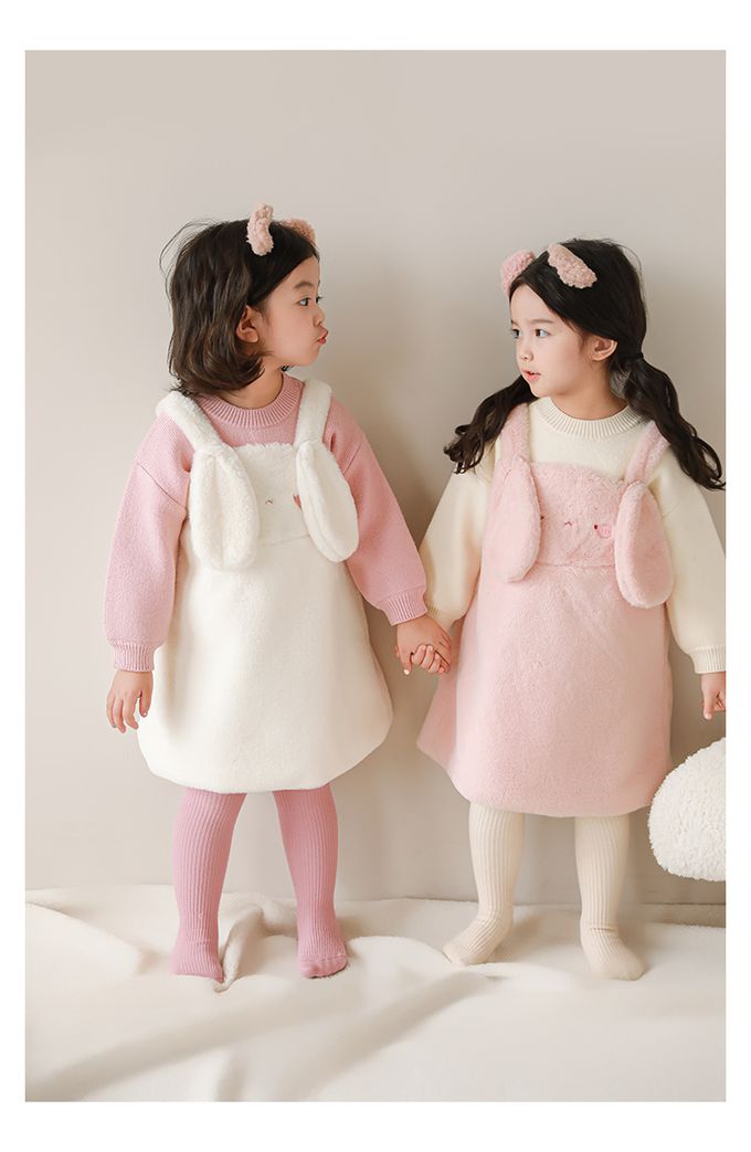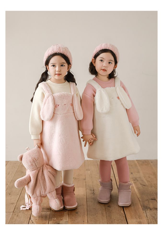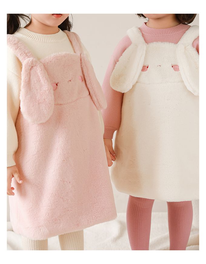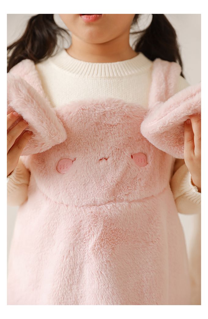TONGMO - 仿兔絨加厚保暖吊帶裙/洋裝(不含內搭上衣)-立體萌兔-白色