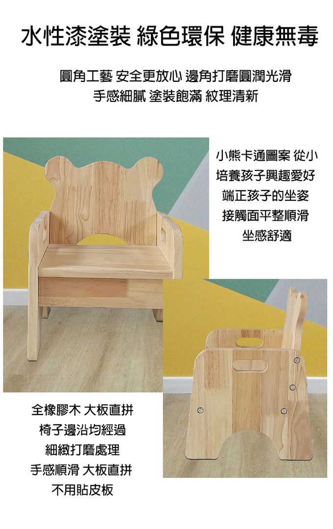 品名:桌椅組|實木花生桌+森林小熊遊戲椅