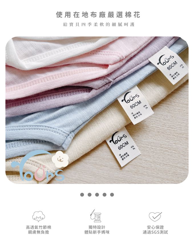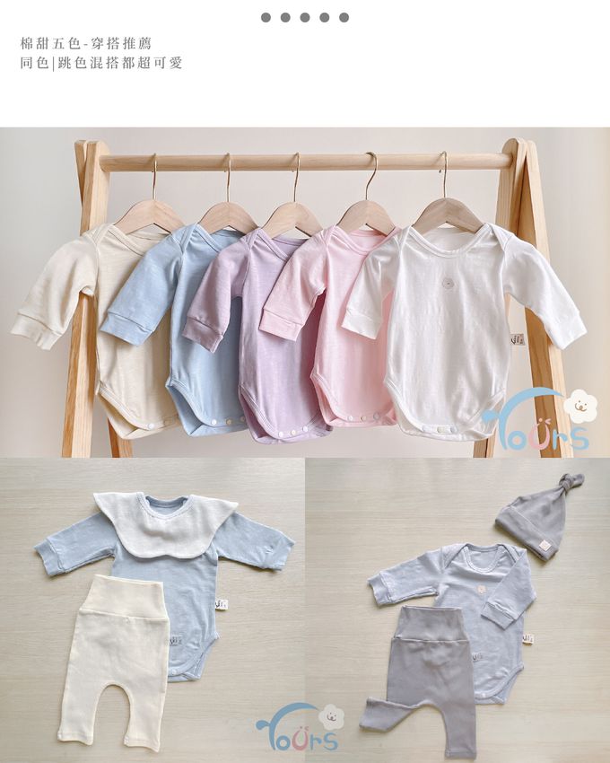 -新生兒親膚衣物(嬰幼兒包巾與背巾、包屁衣、學習褲、紗布衣等)。