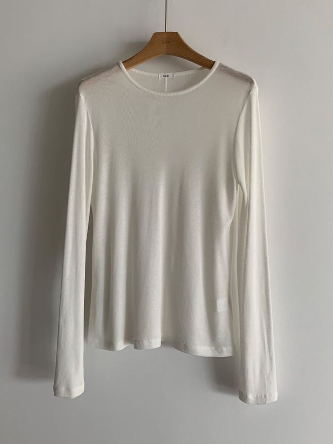 韓國女裝連線 - 天絲混羊毛彈性薄長袖上衣-白 (FREE)