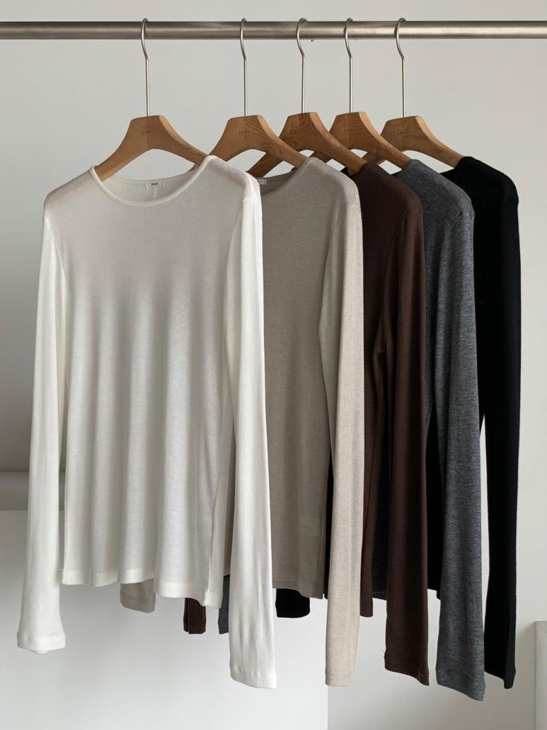 韓國女裝連線 - 天絲混羊毛彈性薄長袖上衣
