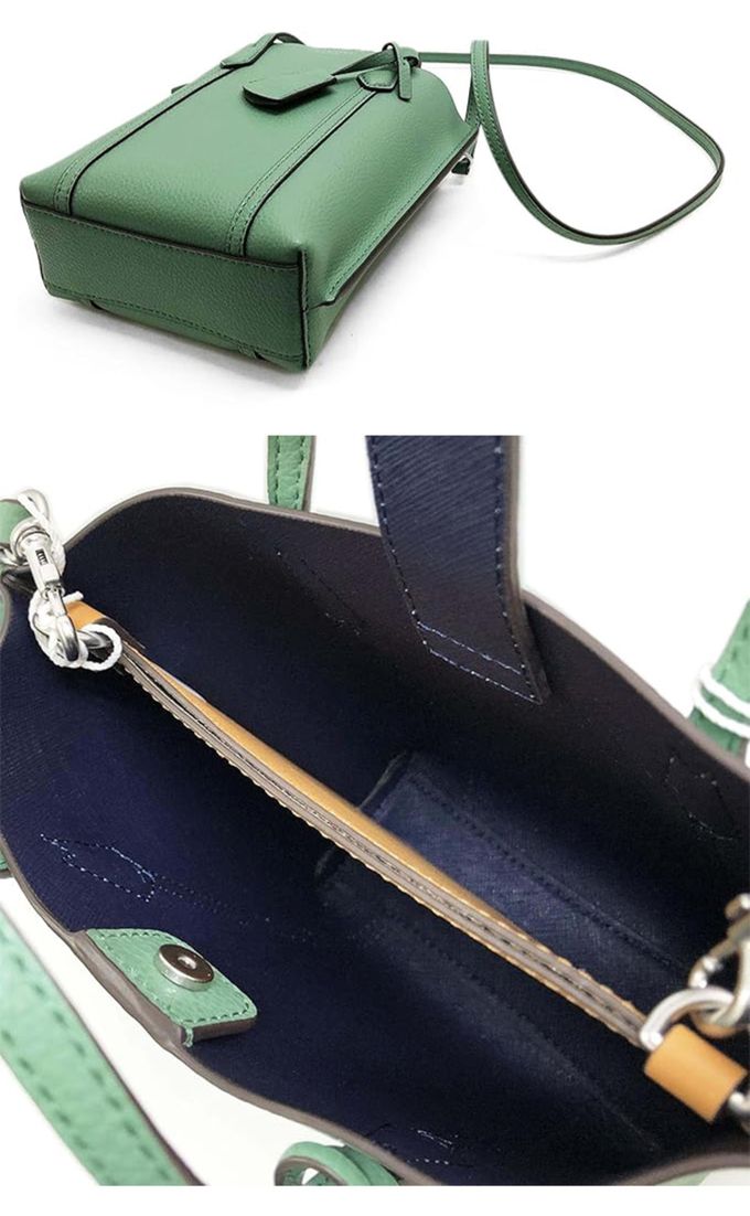 素面皮革肩背托特包 (綠)