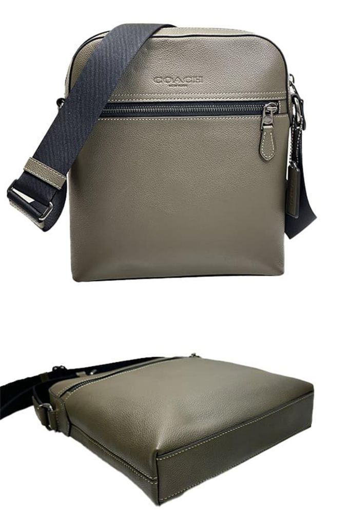 荔枝紋素面皮革斜背包 (軍綠)