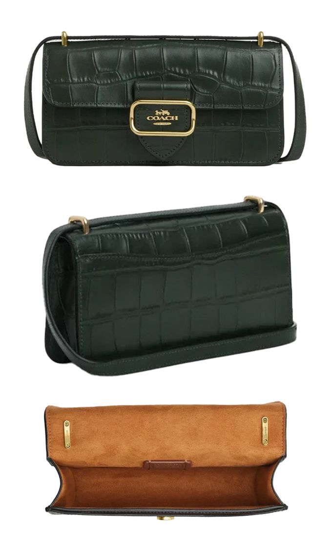 鱷魚紋皮革翻蓋迷你斜背包 (深綠)