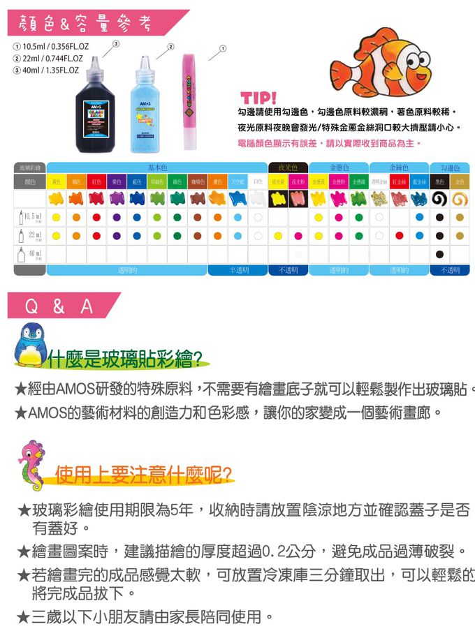 韓國AMOS 7色10.ML可愛公主玻璃彩繪創意組合(玻璃貼+模型版)