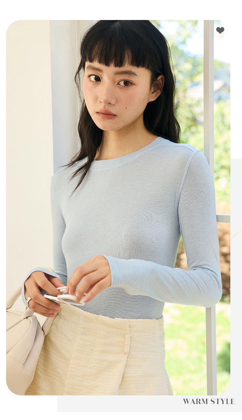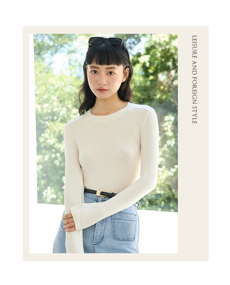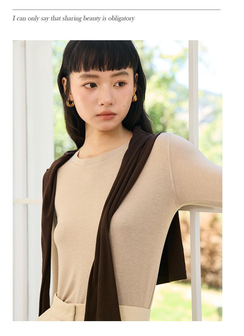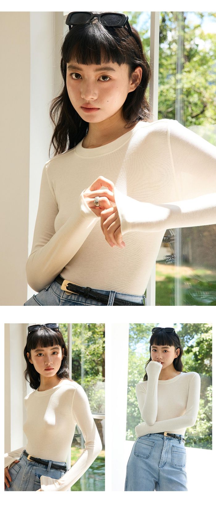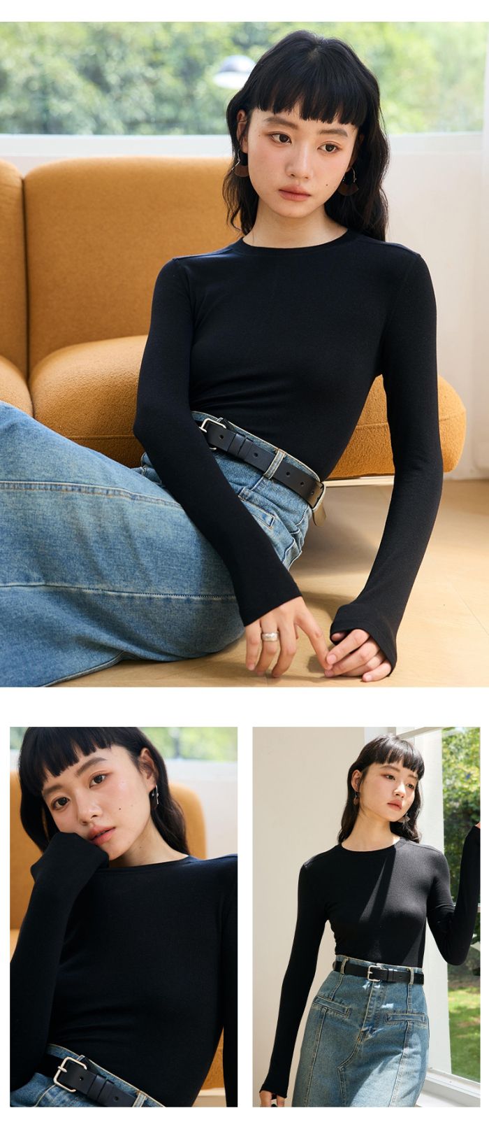 4.4%羊毛天絲圓領長袖上衣-松煙黑