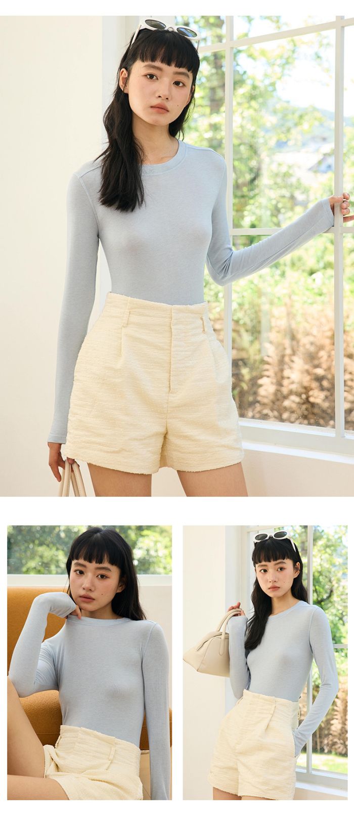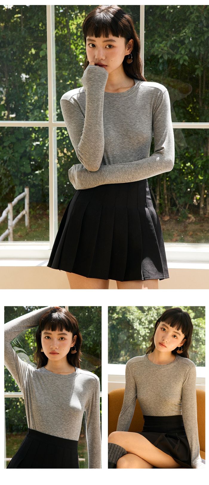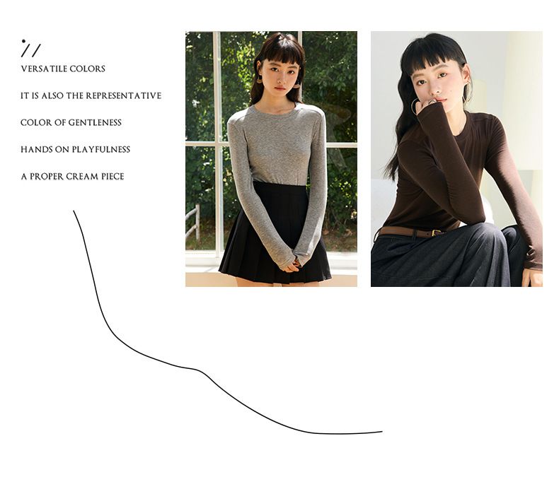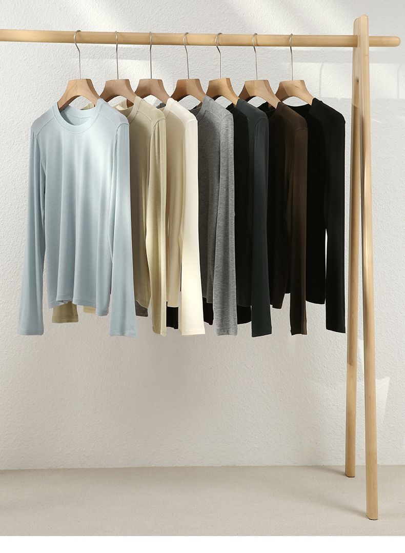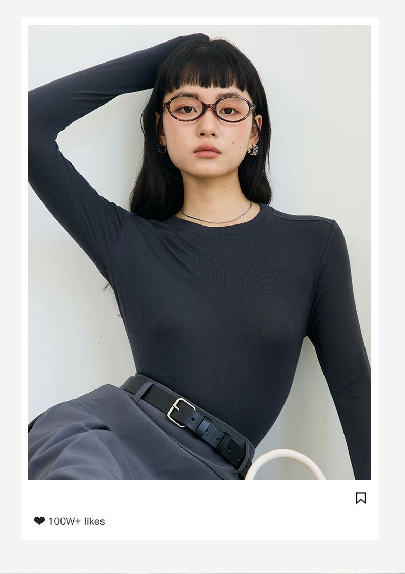 4.4%羊毛天絲圓領長袖上衣-松煙黑