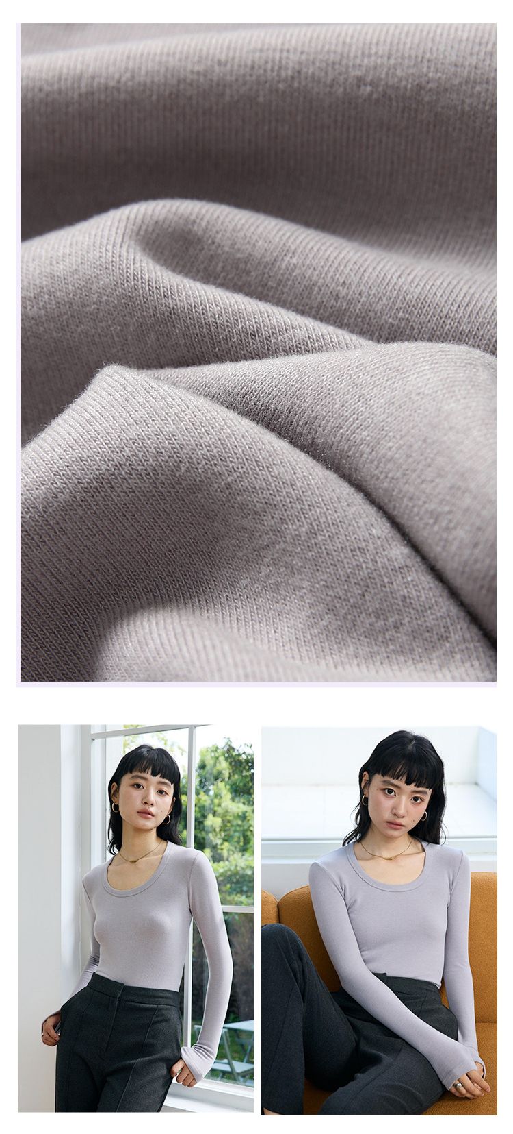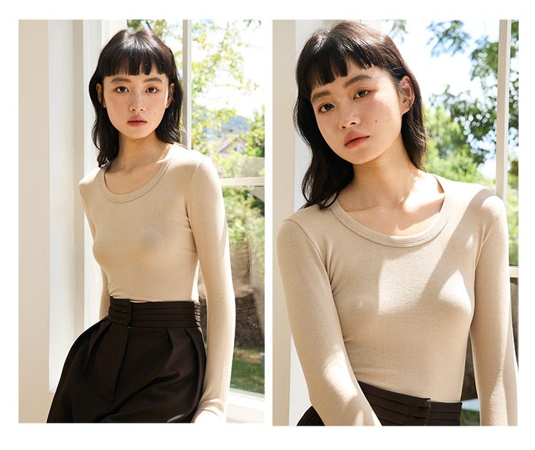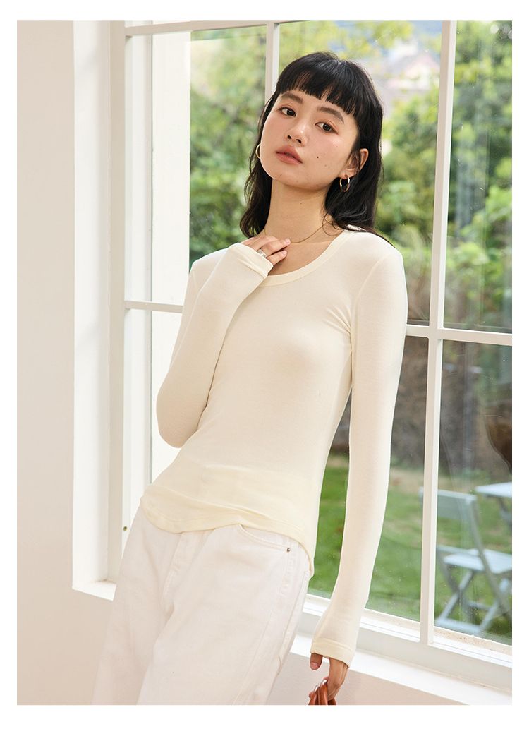 品名:4.1%羊毛天絲修飾U領長袖上衣