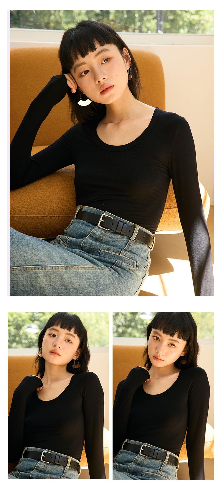 U領拉長頸部線條,修飾臉型和直角肩膀