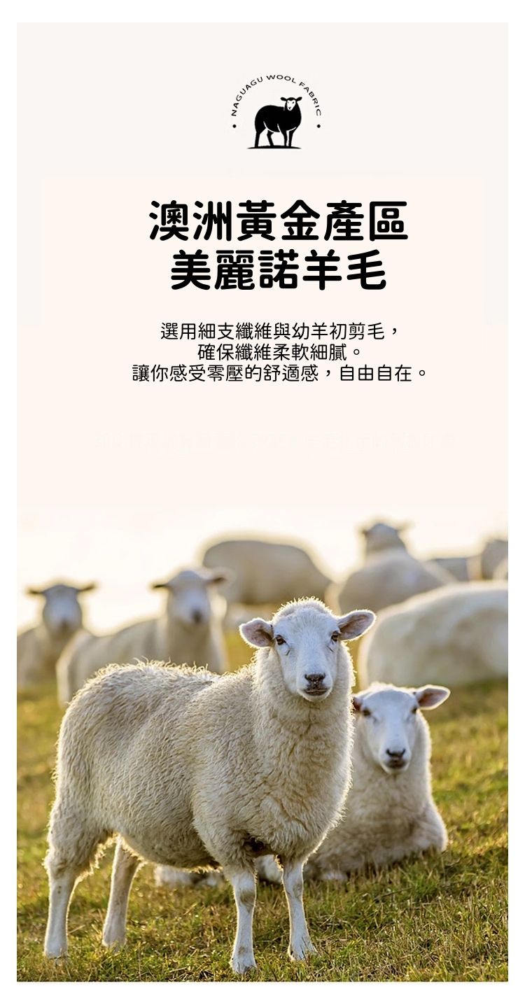 添加美麗諾羊毛,輕盈、蓬鬆、保暖