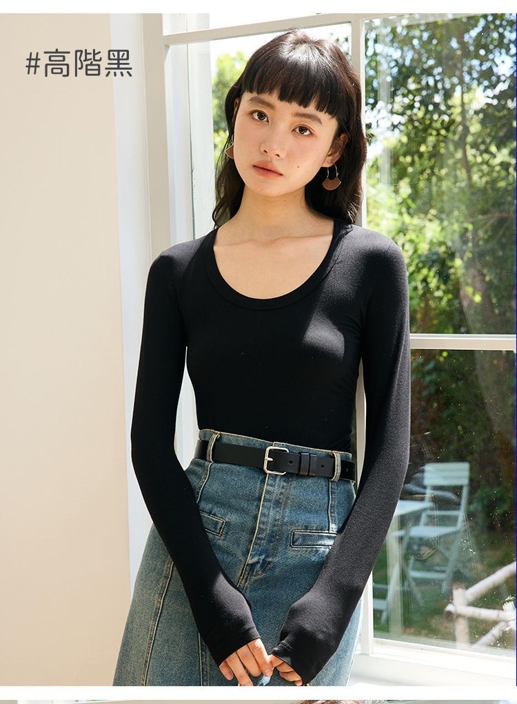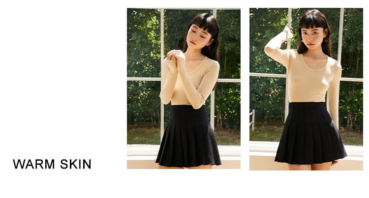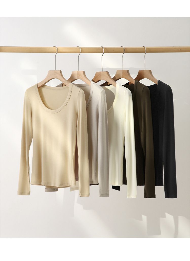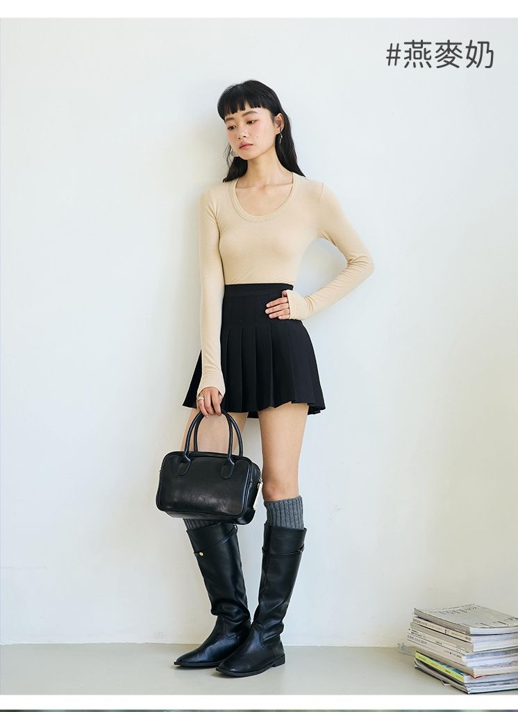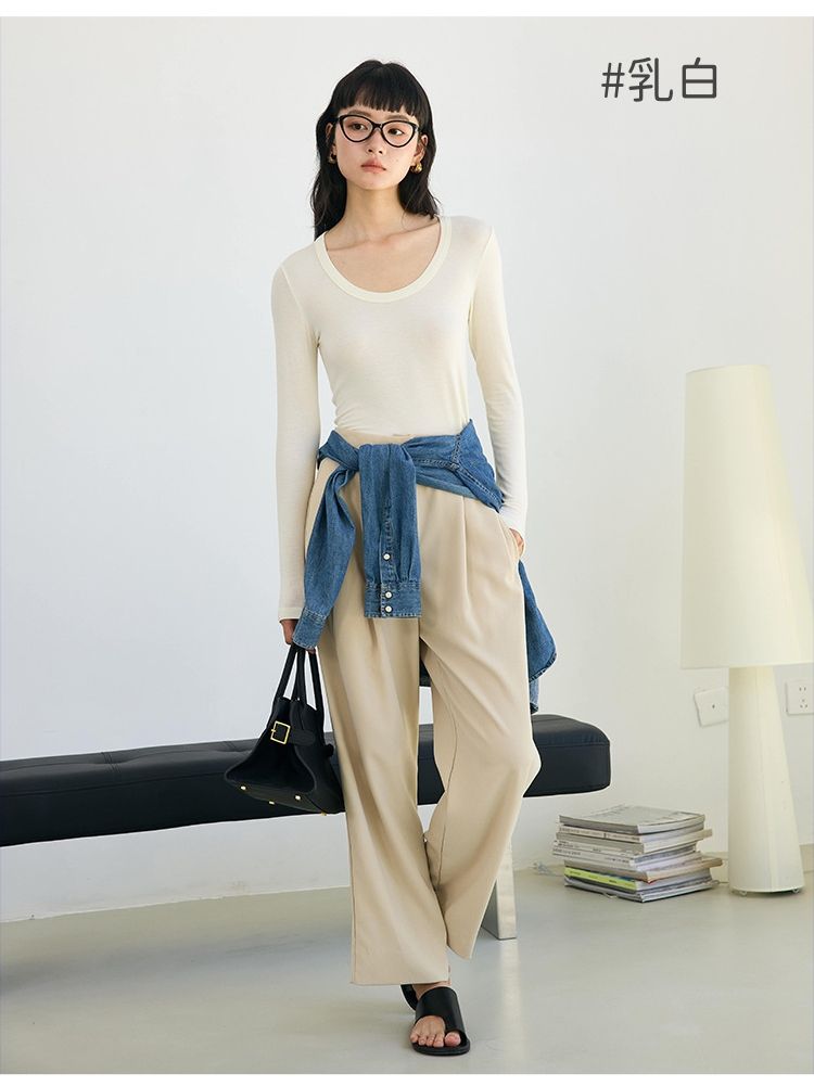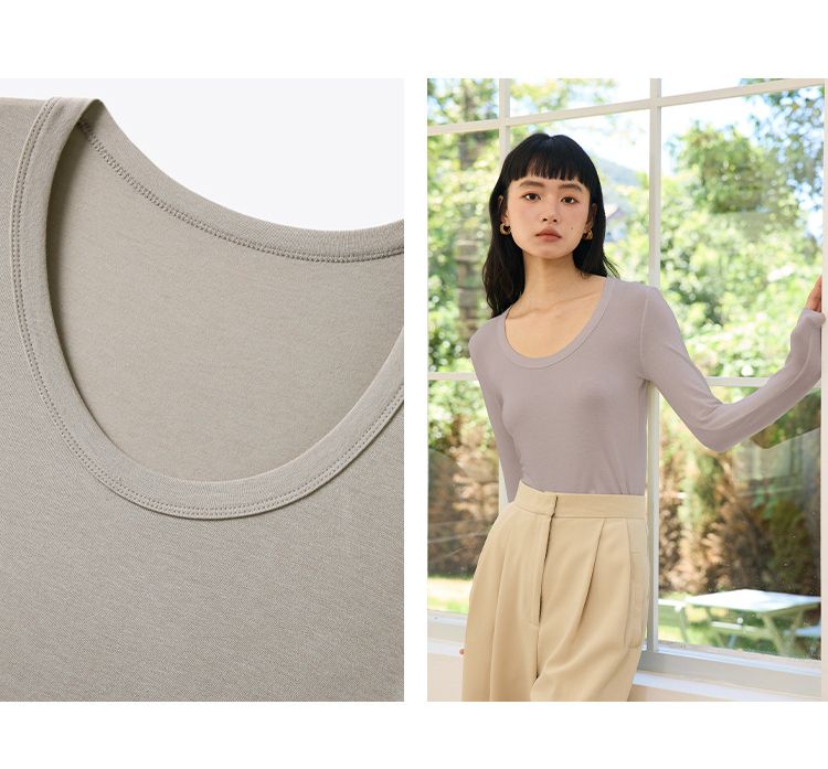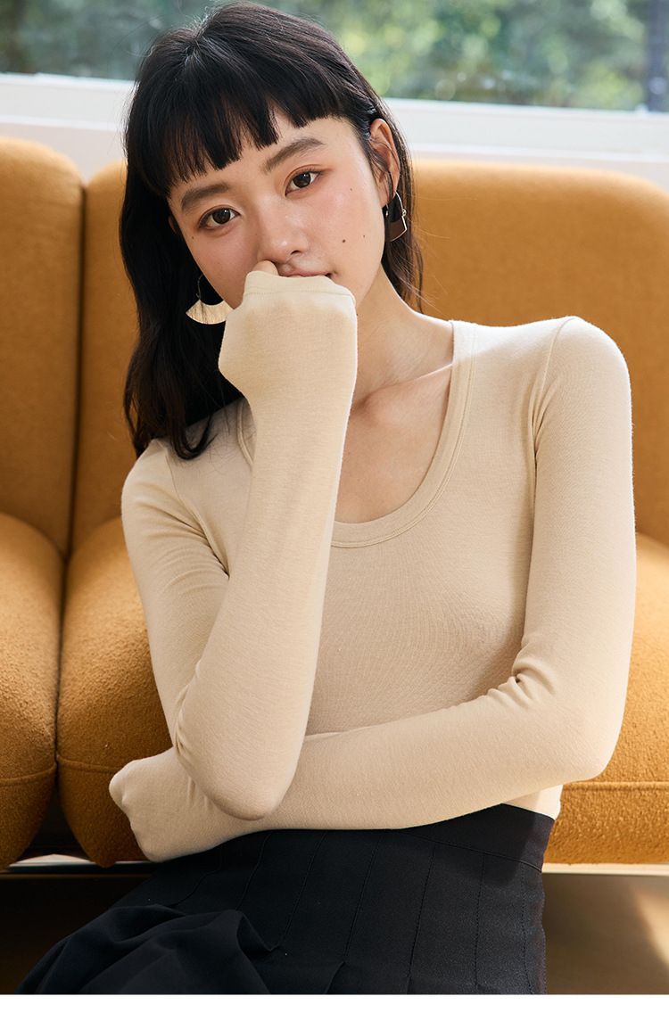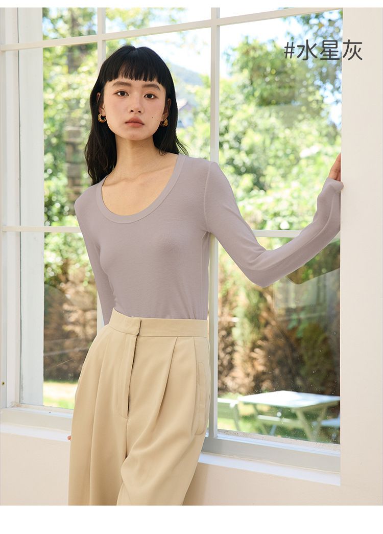 品名:4.6%羊毛天絲修飾U領長袖上衣
