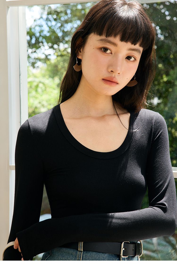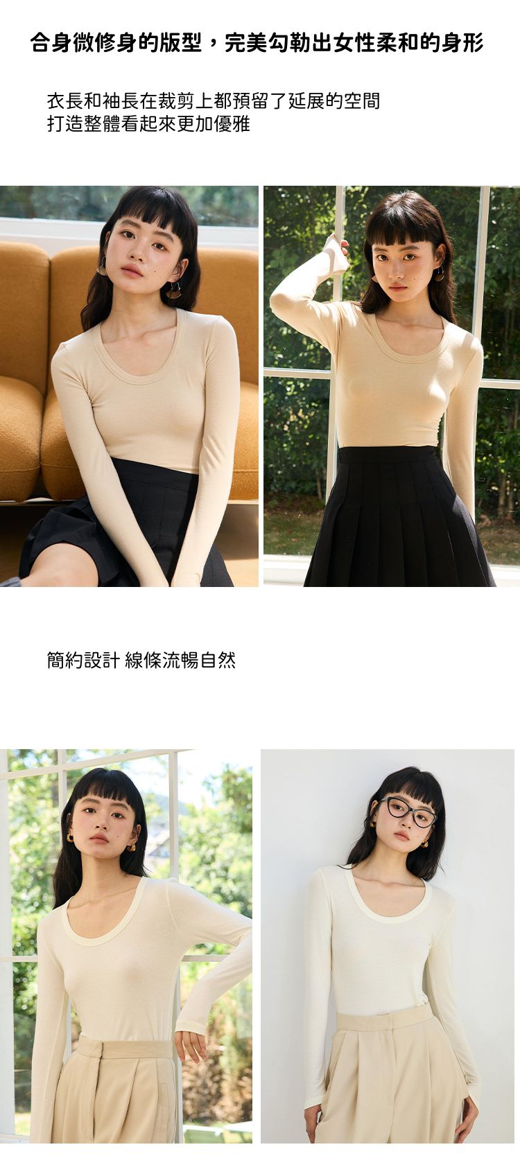 U領拉長頸部線條,修飾臉型和直角肩膀
