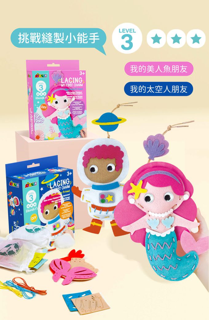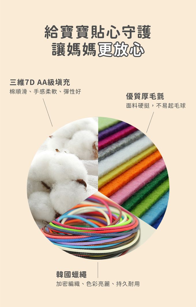 ※ 內容物:共 1 份材料包 (毛氈布塊、穿繩蠟線、填充物、飾片配件、說明書)