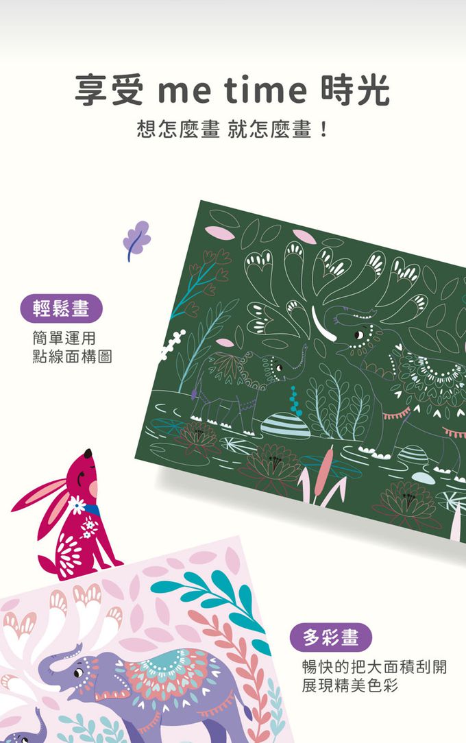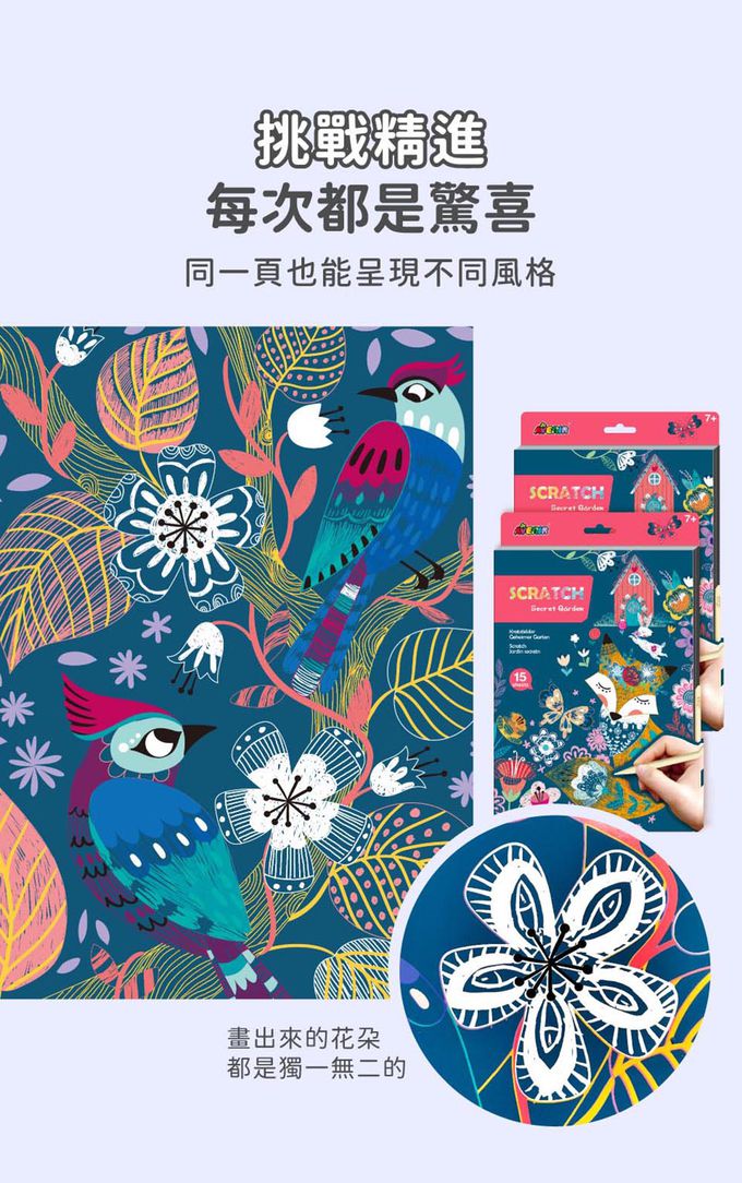 ※ 內容物:一隻刮畫筆;一本 13 張插畫頁、2張空白七彩頁