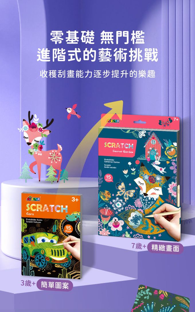 • 一本多款童趣主題,寶寶盡情享受刮畫